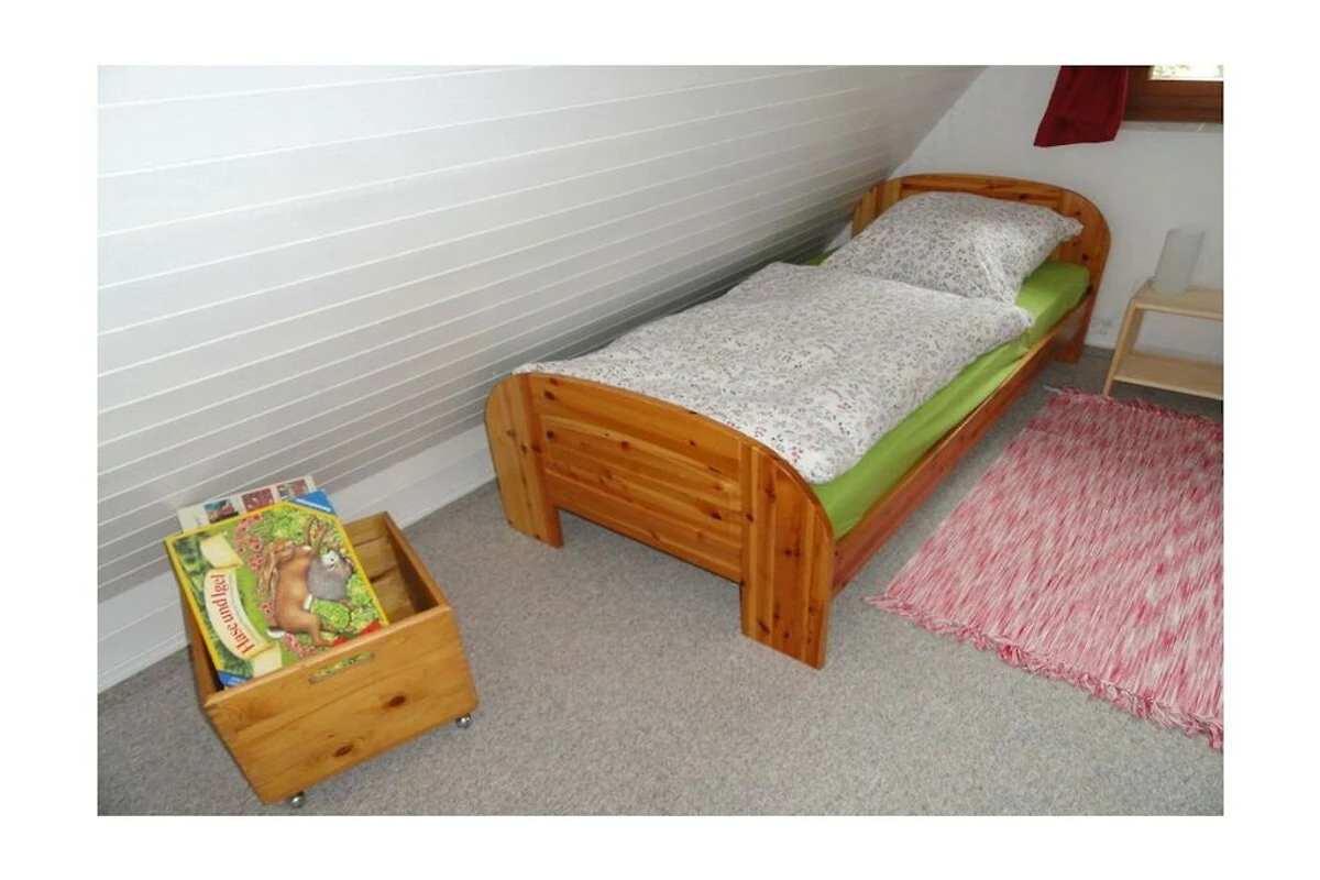 Zwei der drei Schlafzimmer befinden sich im Obergeschoss, von dort haben Sie einen guten Blick in den Garten und über die Siedlung. Ein kleines Gartenhaus bietet Platz für ggf. mitgebrachte Fahrräder. Gartenmöbel und Grill sind vorhanden.