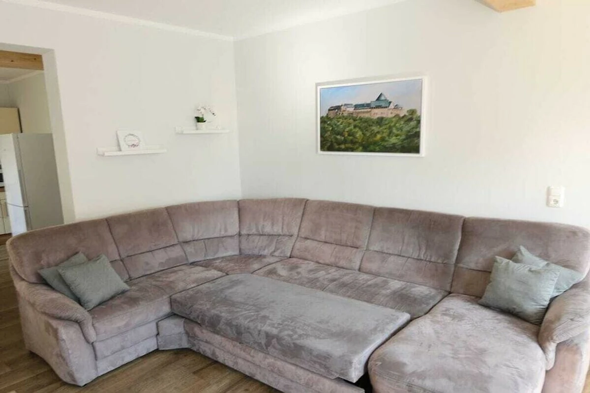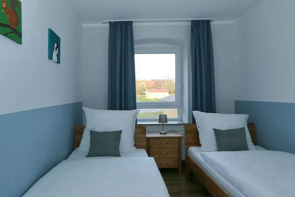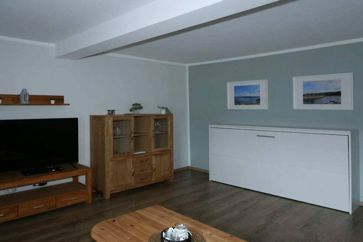 Die 100m² große Wohnung im Erdgeschoss besitzt mit 2 Schlafzimmern und 2 Schlafmöglichkeiten im Wohnzimmer (Schrankbett und Schlafsofa) Platz für 6 Personen, mit Baby sogar für 7 Personen.