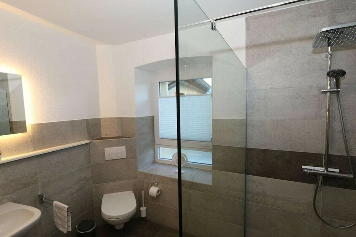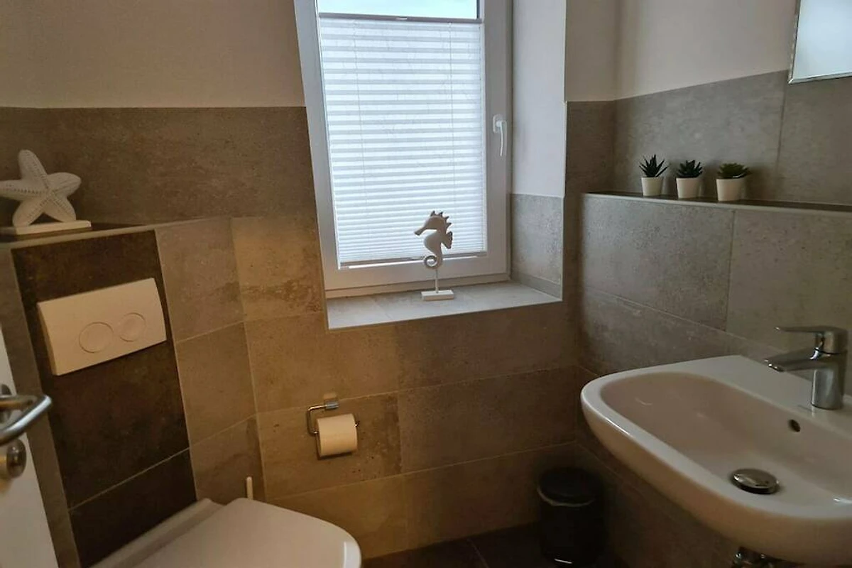 Diese Wohnung verfügt sowohl über ein Gäste-WC als auch über ein Badezimmer mit barrierefreier Wellnessdusche. Die Küche ist mit einem Geschirrspüler und einer Kühlschrank/Gefrierschrankkombination voll ausgestattet. Die neue und moderne Innenausstattung sowie die hellen, freundlichen, geräumigen und hohen Räume laden zum Entspannen ein. Der großzügige Flur bietet mit einer Sitzgelegenheit zusätzlichen Platz zum Relaxen. Abgerundet wird die Wohnung mit einer großen Terrasse im Vorgarten, die angrenzende Rasenfläche bietet für die Kinder Platz zum Spielen.