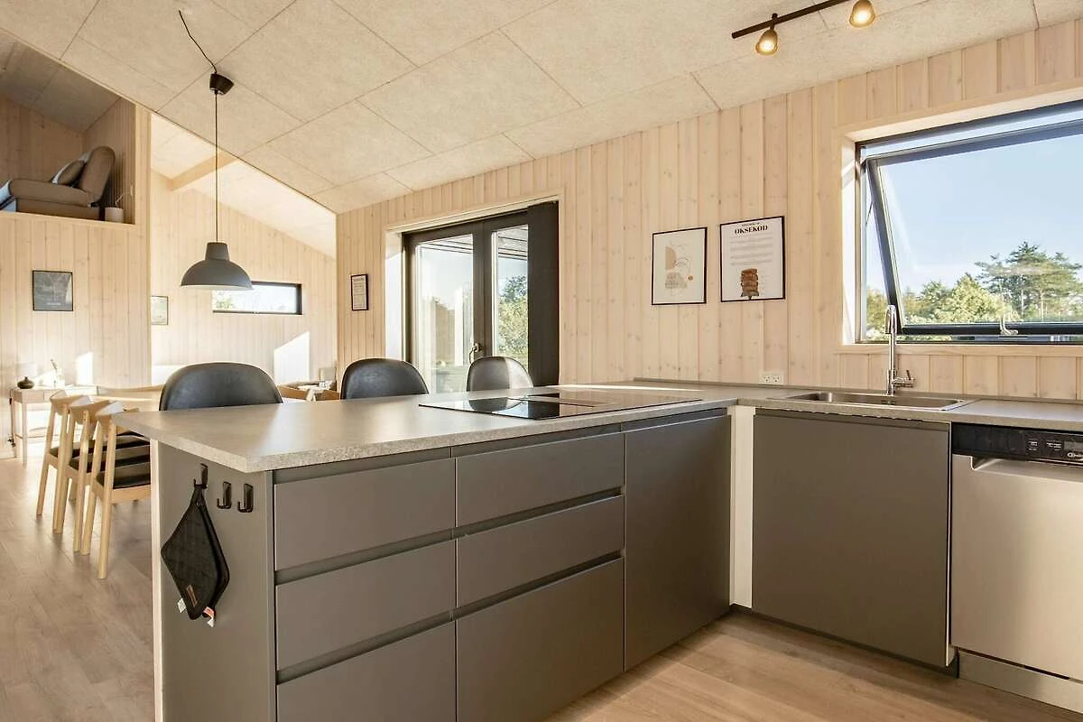 Ganz modernes Ferienhaus in herrlicher Lage nahe Ålbæk und des schönen, kinderfreundlichen Badeufers. Das Ferienhaus ist gemütlich und freundlich eingerichtet mit Dachschrägen, viel Licht und schönen Details. Offener Küchen-/Wohnbereich für das Familienleben mit Ess- und Sitzecke sowie klimafreundlicher Wärmepumpe. Durch die großen Fensterfläche Richtung Süden hat man Ausblick in die grüne Umgebung. Im Haus stehen drei Schlafzimmer mit guten Betten sowie ein Hems mit zwei weiteren Schlafplätzen bereit. Auf der Terrasse des Hauses können Sie den ganzen Tag die Sonne genießen und schöne Grillabende verbringen. Auf dem Grundstück können Sie den Hund guten Gewissens frei laufen lassen, da es eingezäunt ist. Keine Vermietung an Jugendgruppen erwünscht!Kurz vor Ihrem Ankunftsdatum kann eine rückzahlbare Kaution erhoben werden. Die Kaution stellt sicher, dass Ihr Aufenthalt reibungslos verläuft, und deckt eventuelle Zusatzleistungen oder Verbrauchskosten ab.Diese Kaution deckt den Verbrauch von Nebenkosten während Ihres Aufenthalts sowie zusätzliche in Anspruch genommene Leistungen ab.Der endgültige Betrag wird anhand der tatsächlichen Zählerstände und Nutzung zusätzlicher Services angepasst. Ein etwaiger Restbetrag wird Ihnen innerhalb von 21 Tagen nach dem Check-out zurückerstattet.Die Kaution dient lediglich als Vorauszahlung für Leistungen, die Sie ohnehin bezahlen würden, und ermöglicht einen reibungslosen Ablauf Ihres Aufenthalts und Check-outs.