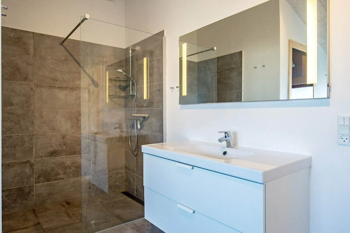 Küche(Kochherd(elektrisch), Kaffeemaschine, Spülmaschine, Tiefkühlschrank(60-99L), Kühl-/Gefrierkombination, Hochstuhl), Wohn-/Schlafzimmer(TV), Schlafzimmer(Doppelbett), Schlafzimmer(Doppelbett), Schlafzimmer(Einzelbett, Doppelbett), Badezimmer(Waschbecken, Dusche, Toilette, Waschmaschine), Badezimmer(Waschbecken, Dusche, Toilette), Empore(Doppelklappbett ), Whirlwanne(im Innenbereich, erwärmt, 2 Personen), Sauna(im Innenbereich, 3 Personen), Heizung(elektrisch), Terrasse, Gartenmöbel, Liegen, Luft-Luft-Wärmepumpe