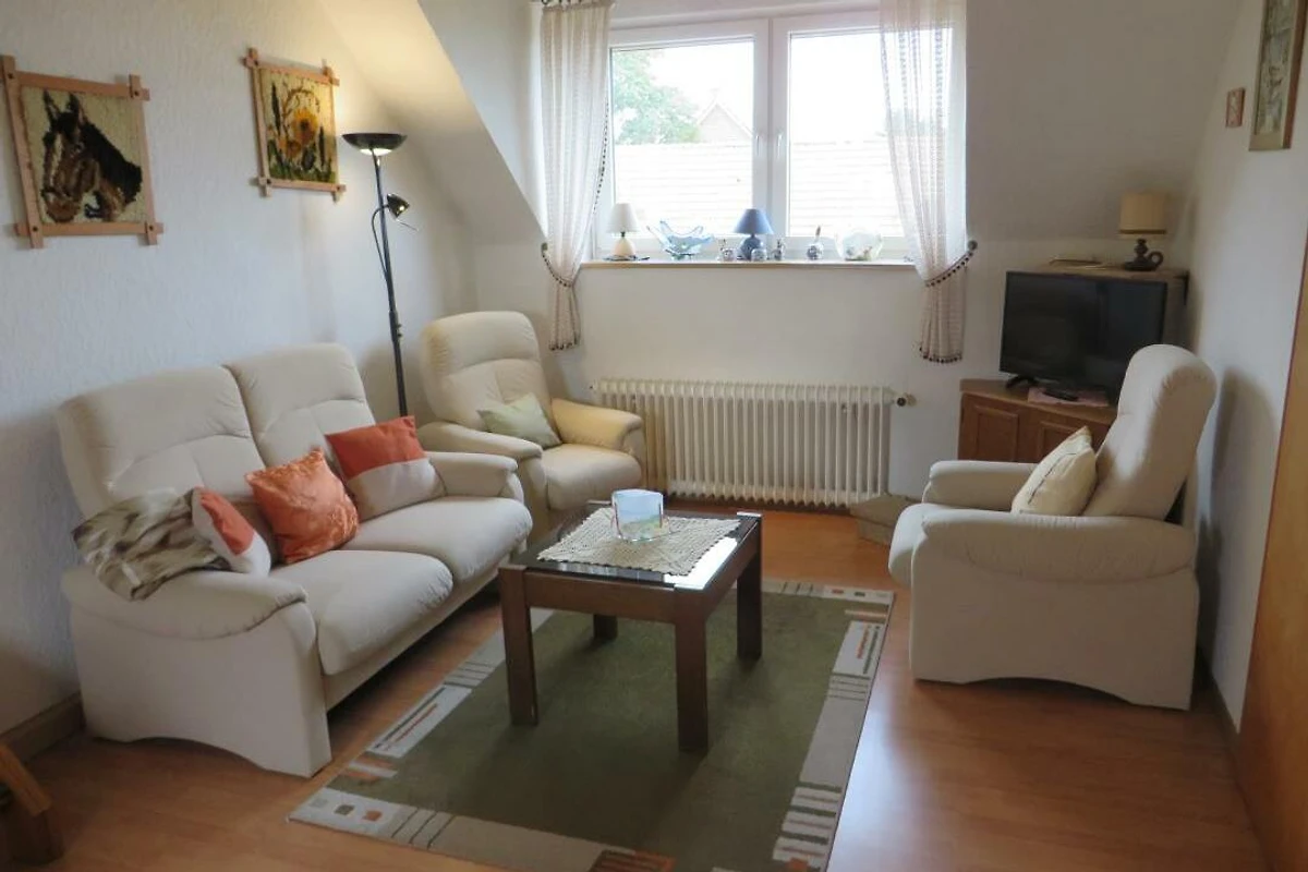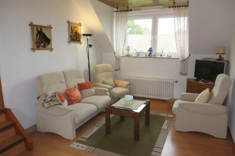 Ferienwohnung direkt am Deich – Erholung in ruhiger Lage . Unsere gemütliche und geräumige Ferienwohnungca. 70 qm befindet sich im Obergeschoss unseres Hauses – nur einen Steinwurf vom Deich entfernt. In ruhiger Lage gelegen, ist sie der perfekte Rückzugsort für alle, die Entspannung suchen und gleichzeitig die Natur geniessen möchten. Die Wohnung bietet ausreichend Platz für bis zu 4 Personen plus ein Kleinkind. Ein Babybett sowie ein Hochstuhl stehen Ihnen selbstverständlich kostenlos zur Verfügung. Es erwarten Sie drei Schlafzimmer: Ein Schlafzimmer mit komfortablem Doppelbett, zwei weitere Schlafzimmer mit jeweils einem Einzelbett – ideal für Kinder oder Freunde. Der grosszügige Wohn- und Essbereich lädt zum gemeinsamen Verweilen ein. In der gut ausgestatteten Küche finden Sie alles, was Sie für die Zubereitung Ihrer Mahlzeiten benötigen. Für Ihren Komfort stehen zwei PKW-Stellplätze direkt am Haus bereit. Der Garten kann ebenfalls mitgenutzt werden – ob zum Sonnen, Lesen oder für ausgelassenes Spielen mit den Kindern. WLAN steht Ihnen in der gesamten Wohnung kostenfrei zur Verfügung. Bettwäsche und Handtücher können bei Bedarf gerne für 12 Euro pro Person dazugebucht werden. Wir freuen uns darauf, Sie bald bei uns begrüssen zu dürfen – für erholsame Tage an der Nordsee direkt am Deich!