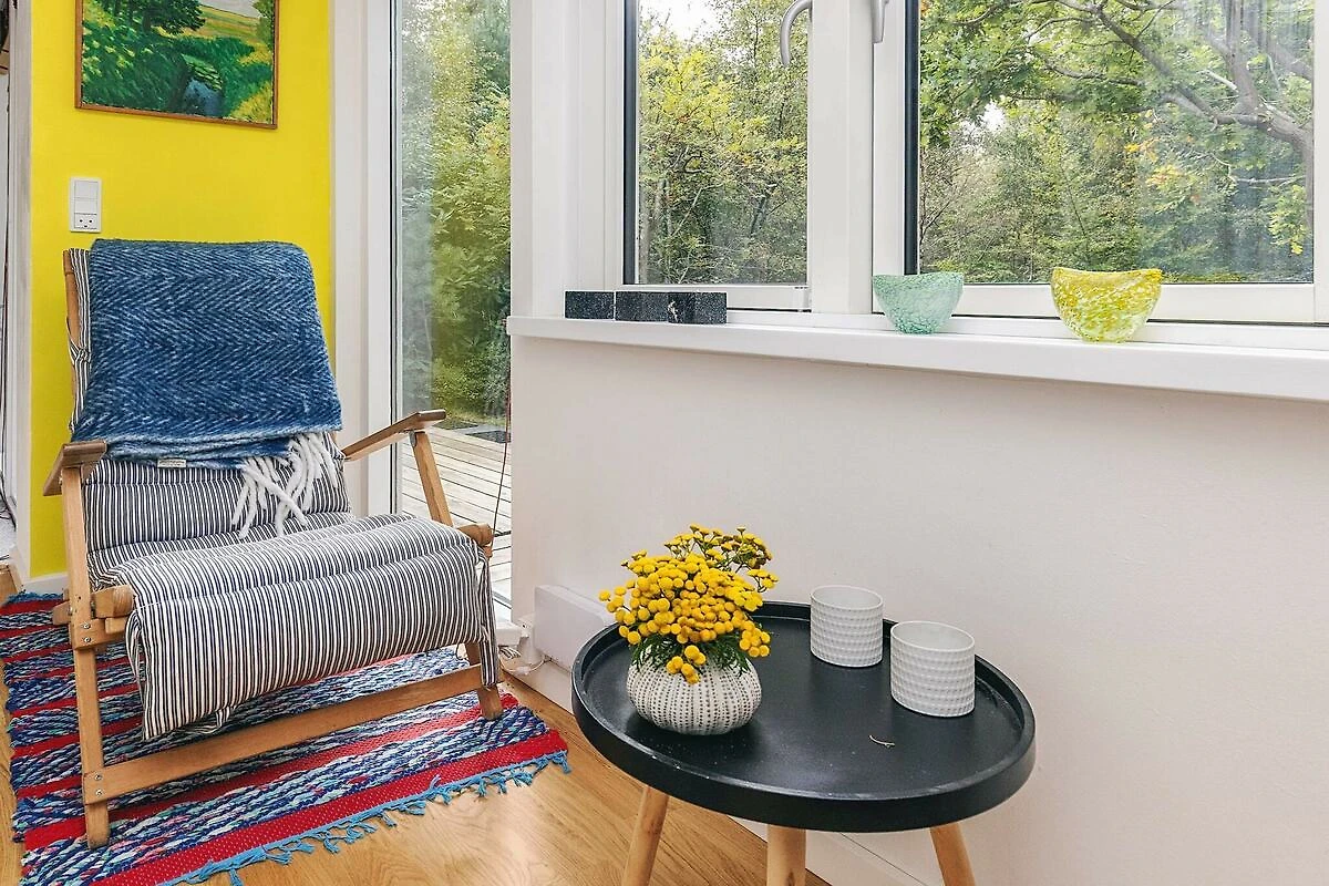Mitten im geschützten Wald Ulvshaleskov, umgeben von Ruhe, Vogel- und Tierwelt, liegt dieses gemütliche, ungestörte Ferienhaus. Das Ferienhaus ist 77 m² groß und steht auf einem großen Naturgrundstück. Rund um das Haus verläuft eine Holzterrasse, und es gibt einen kleinen, mit Schilfufer bewachsenen See, in dem die Grünammer nistet. Das Ferienhaus besteht aus einem geräumigen Schlafzimmer mit Doppelbett und einem Flur, der in ein helles Wohnzimmer mit Esstisch und doppeltem Schlafsofa führt. Das Wohnzimmer hat große Glasfronten und einen wunderschönen Blick ins Freie, wo man im Sommer Heidelbeeren fürs Frühstück pflücken kann. Dieses Wohnzimmer ist mit einem kleineren Wohnzimmer verbunden, das über eine Schlafnische, einen Holzofen/Wärmepumpe sowie eine funktionale Küche verfügt. Von hier aus gelangt man in einen Flur mit Zugang zu einem Hauswirtschaftsraum mit zusätzlichem Kühlschrank und kleinem Gefrierfach sowie einem schönen, hellen Badezimmer. Außerdem gibt es Zugang zu einer Terrasse mit einer kleinen Außenküche. In der Umgebung gibt es viele Möglichkeiten zum Wandern und Radfahren sowie zum Kajakfahren und Angeln. Der kinderfreundliche Sandstrand Ulvshale Strand liegt ca. 3 km entfernt, nach Nyord By sind es 2 km und nach Stege mit guten Einkaufsmöglichkeiten 9 km.