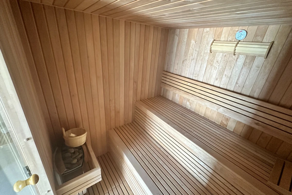 Geniessen Sie ultimative Entspannung mit dem privaten beheizten Swimmingpool der Villa (4x6 Meter), Sauna, Spa und Jacuzzi. Die Immobilie verfügt über Klimaanlage und ein Wärmepumpensystem, das Komfort in allen Jahreszeiten garantiert. Ein gemütlicher Kamin sorgt für Wärme und Atmosphäre in den Innenräumen.