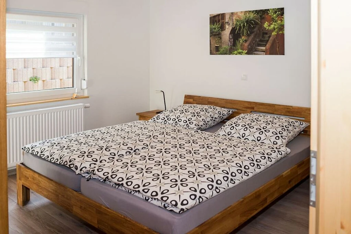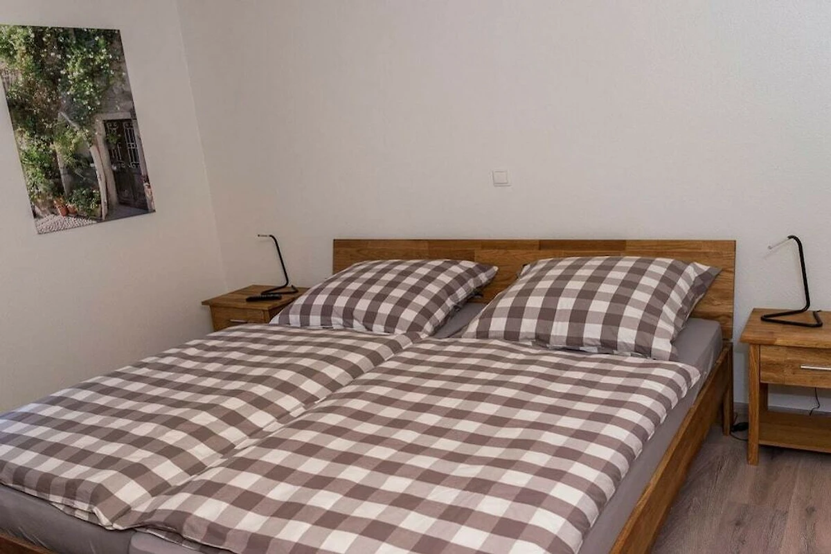 - 1 Schlafzimmer mit Doppelbett (180x200), Kleiderschrank und Nachttischen