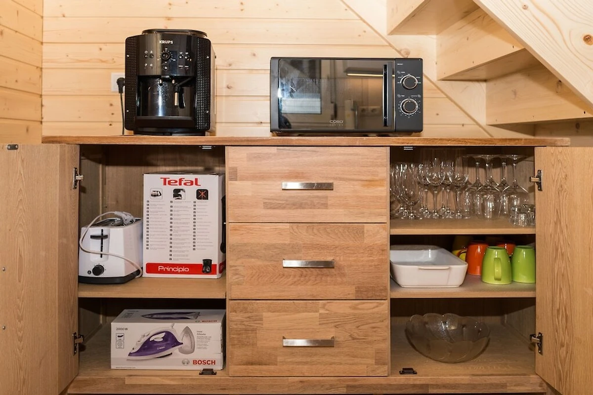 - 1 Kaffeevollautomat (Bohnen) + 1 Kaffeefiltermaschine (Pulver) sind vorhanden