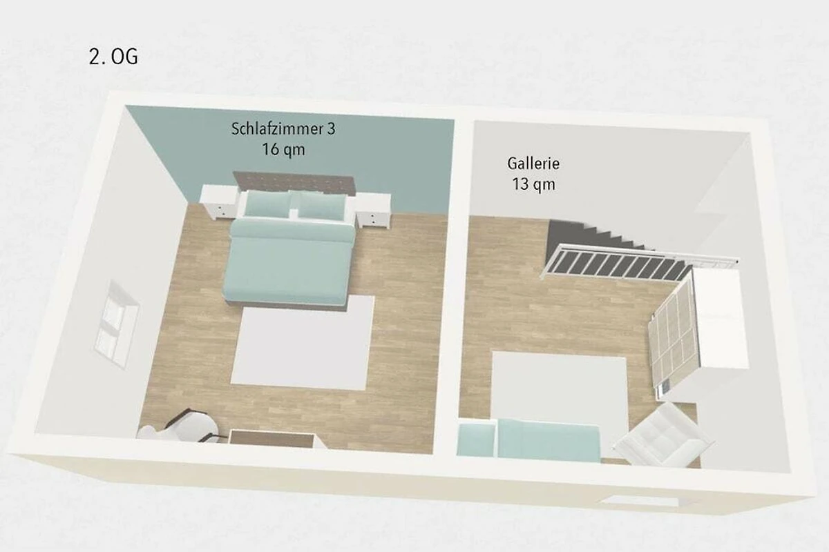 In der 2. Etage: (Schlafzimmer(, , Doppelbett))