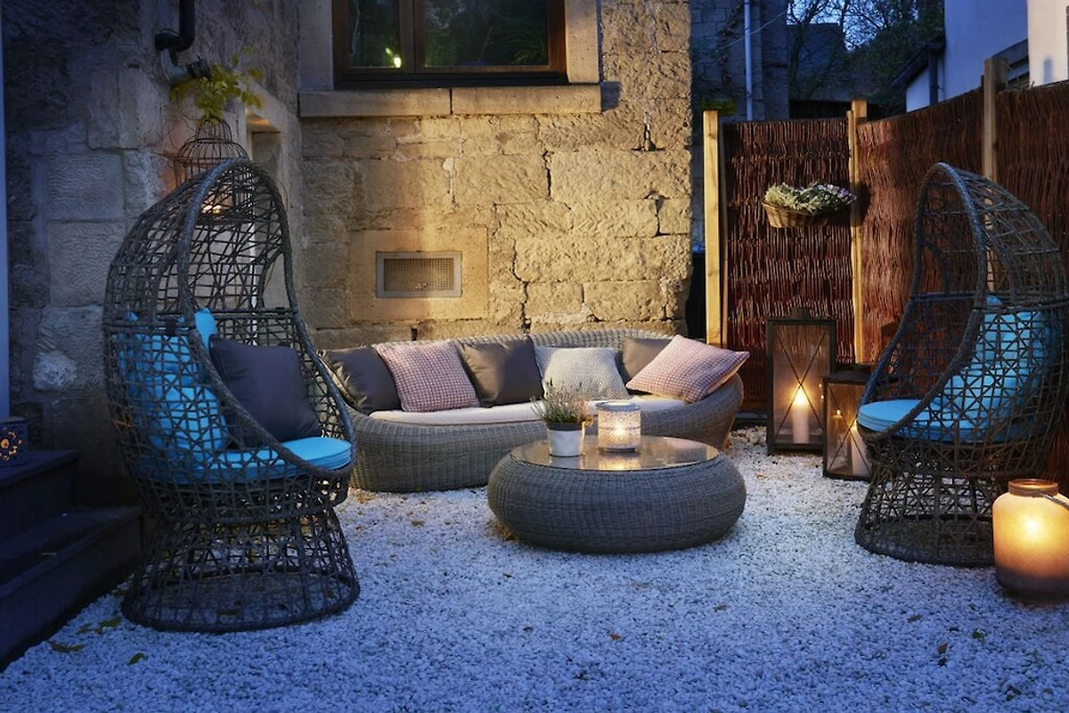 Sie betreten das Ferienhaus durch einen sonnenverwöhnten, zum Verweilen angelegten Hof, den Sie alleine und ungestört nutzen können.