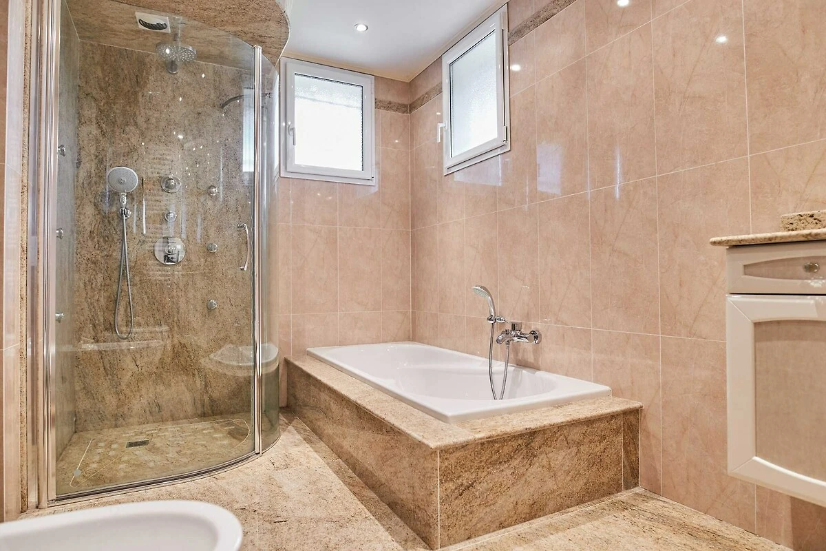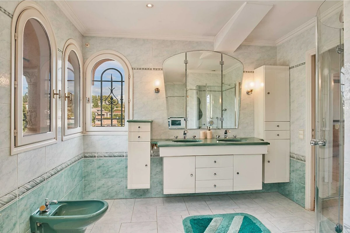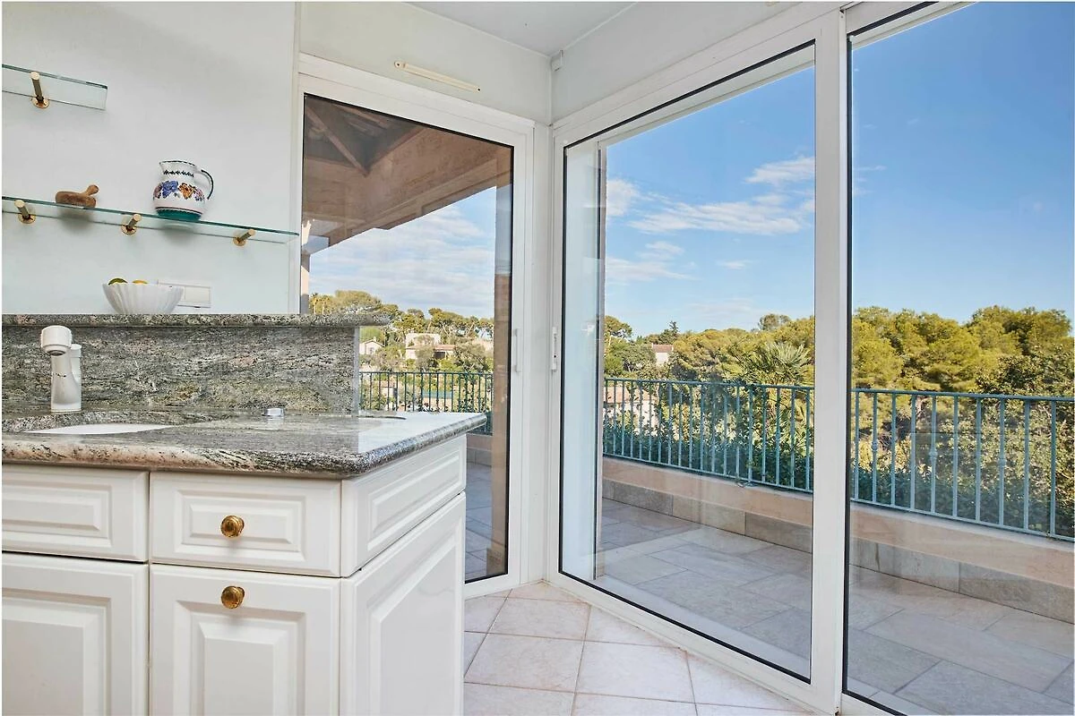 ? Checkmyguest bietet eine atemberaubende 280 m² große Villa in den Hügeln von Vallauris. Sie bietet Platz für bis zu sechs Gäste und verfügt über private Pools, einen Whirlpool, einen Fitnessraum, Klimaanlage und WLAN. Genießen Sie einen ruhigen und komfortablen Aufenthalt nur 10 Minuten von den Stränden, 20 Minuten vom Palais des Festivals in Cannes und in der Nähe von Geschäften, Restaurants und Bars.