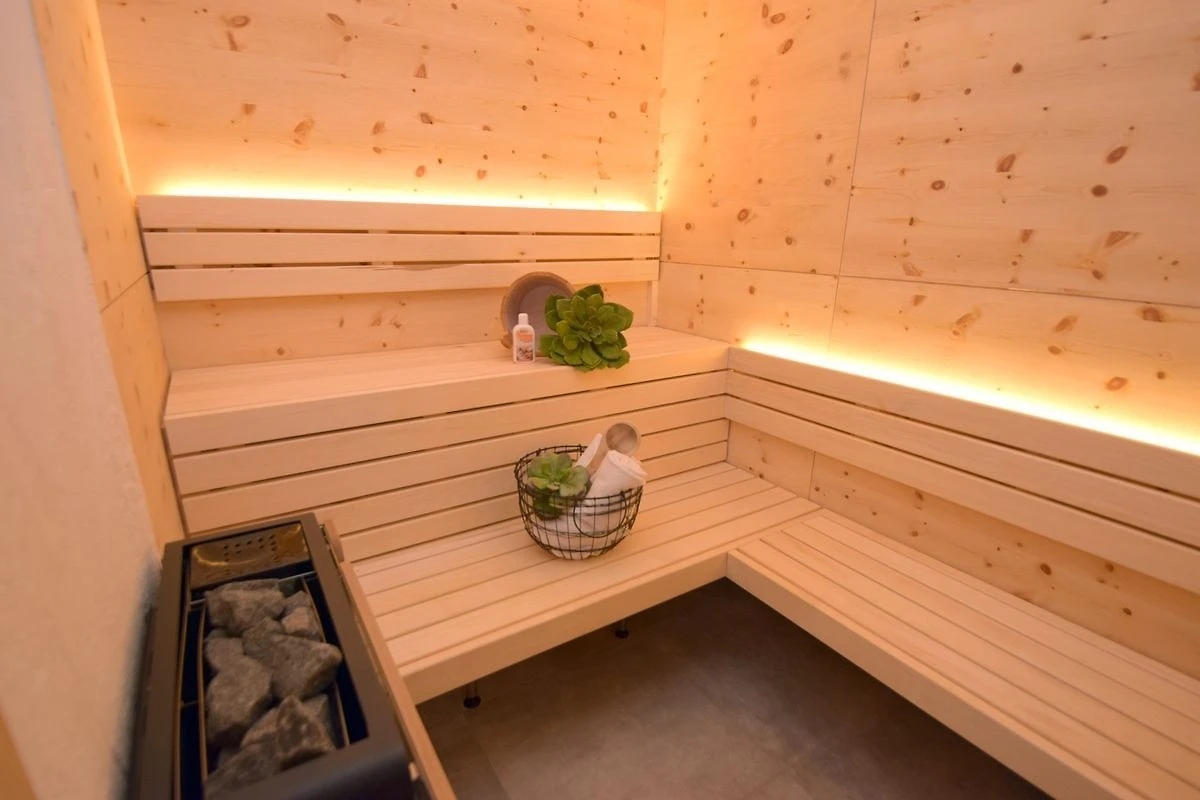 Sauna aus duftendem Zirbenholz (Finnisch- oder Biobetrieb)