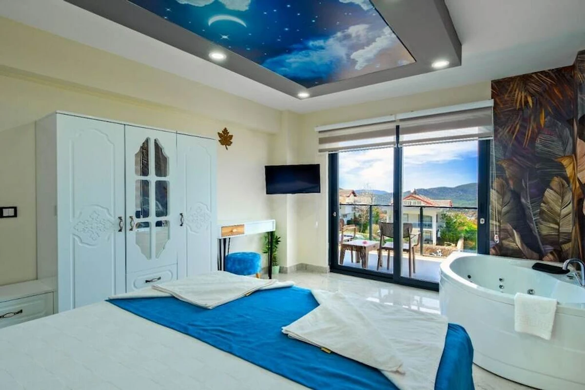 Unsere Villa befindet sich im Stadtteil Ovacık in Fethiye und bietet einen herrlichen Blick auf den Babadagi und den höchsten Berg der Region, den Mendos Dagi. Dank ihrer Nähe zu weltberühmten Stränden und Sehenswürdigkeiten wie dem mit der Blauen Flagge ausgezeichneten Ölüdeniz-Strand, der Kıdrak-Bucht, dem Schmetterlingstal und der Kabak-Bucht, bietet Villa Sun ihren Gästen ein perfektes Villenerlebnis. Auch Sie können in der Villa Sudenaz die Müdigkeit des Jahres hinter sich lassen und Ihren Urlaub in vollen Zügen genießen.