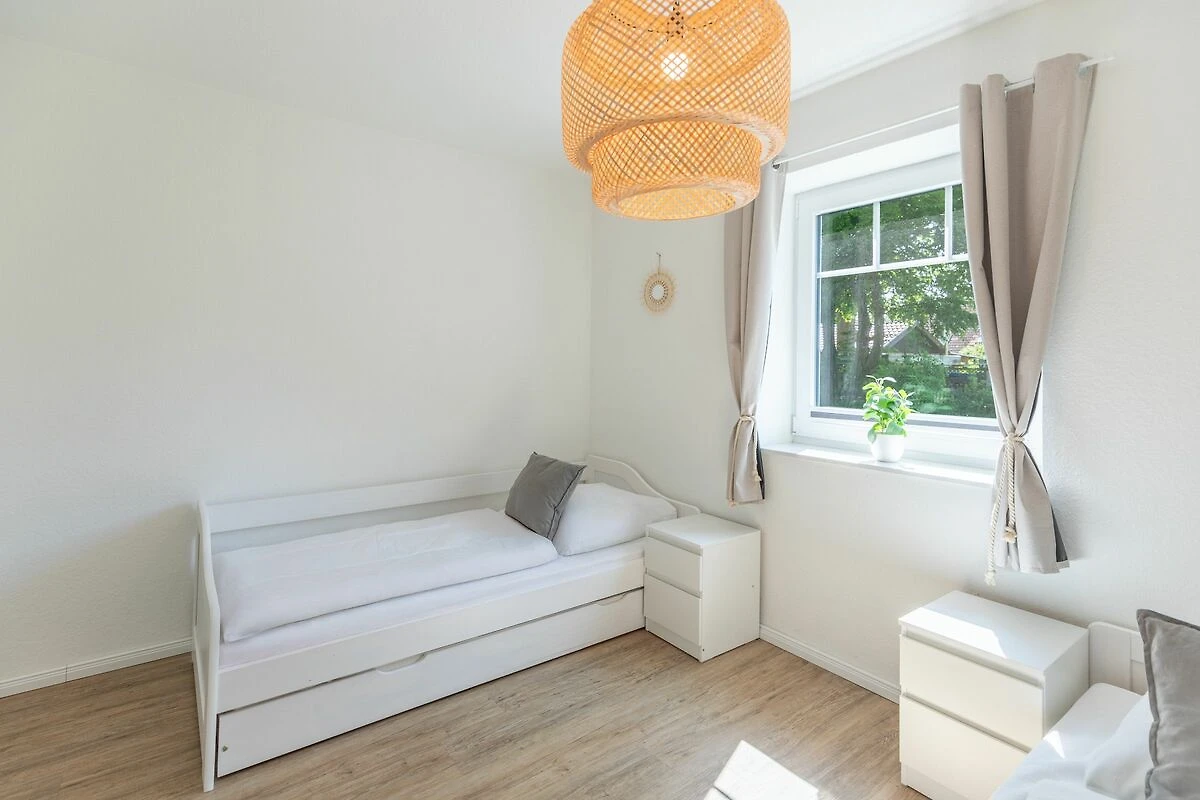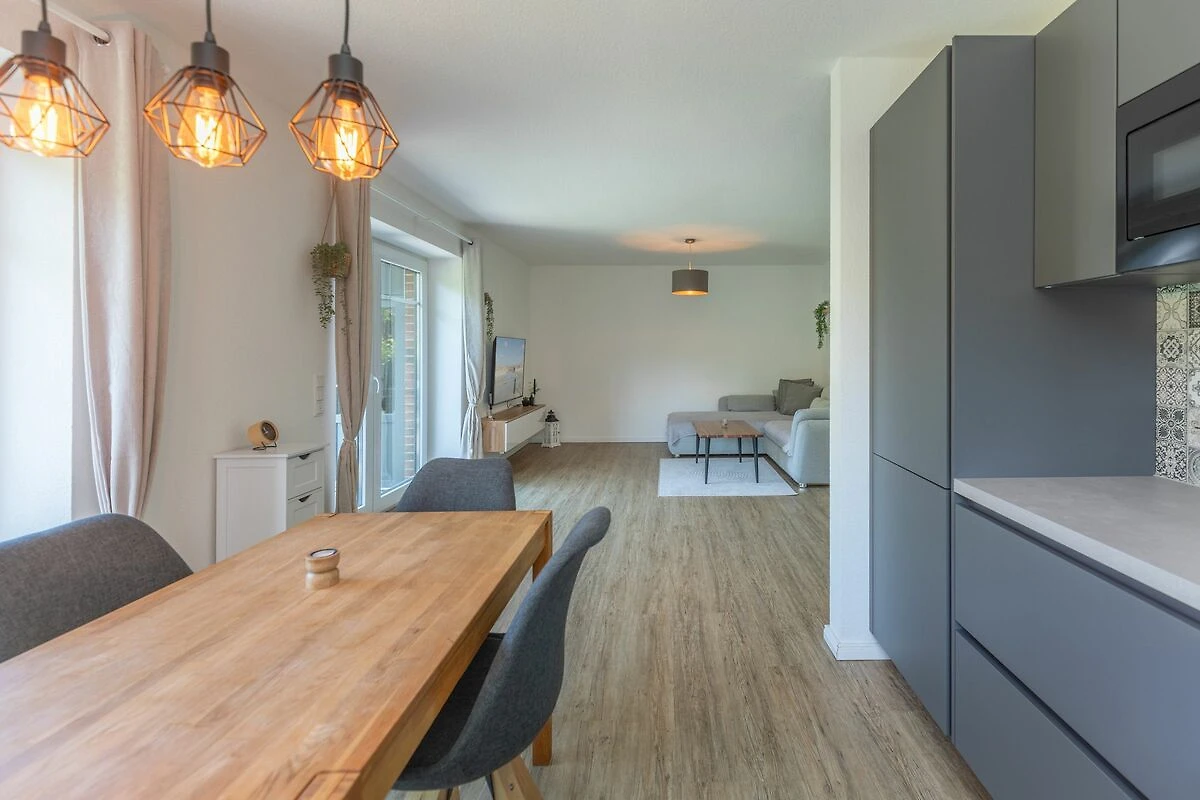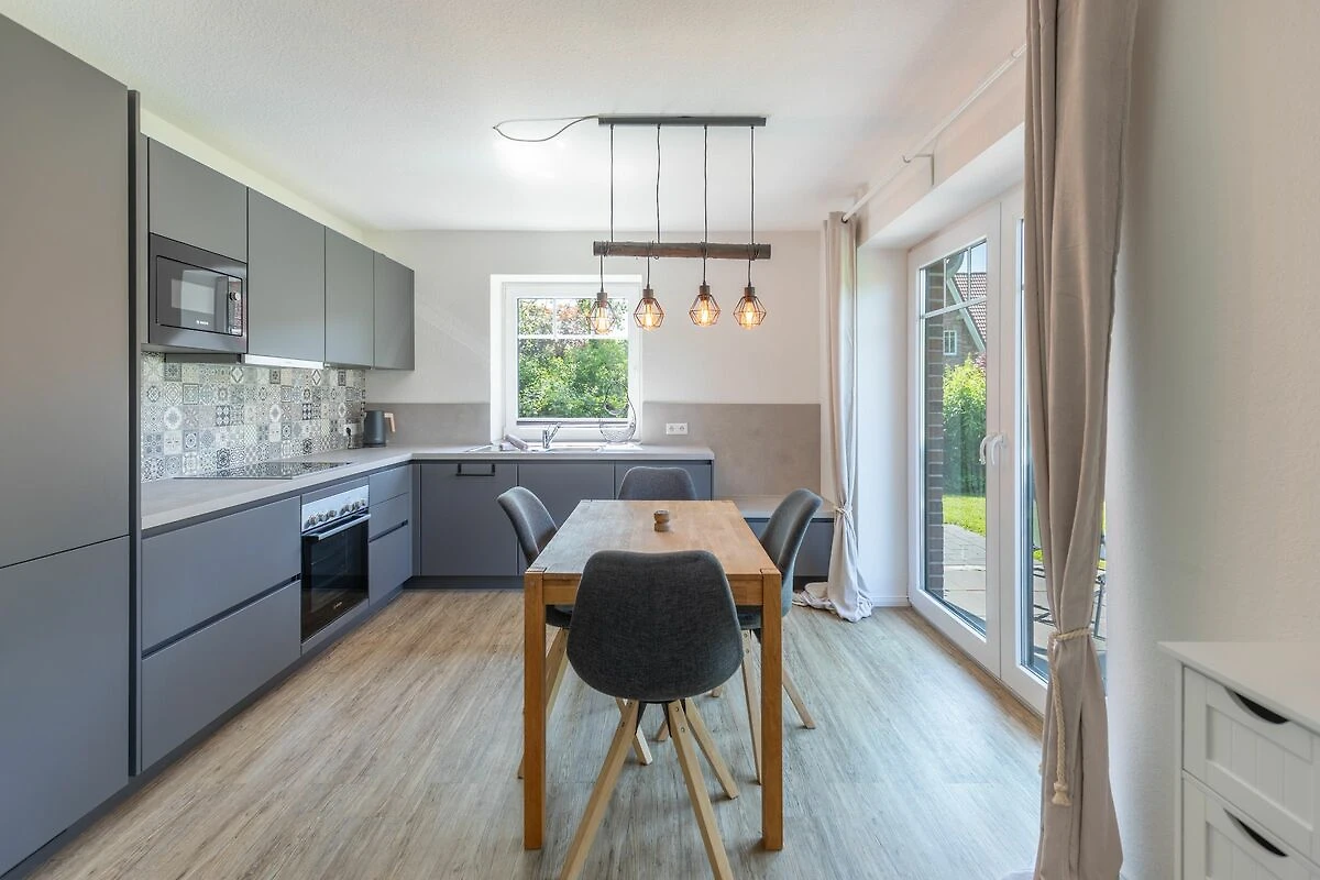 Ein sehr schönes Ferienhaus mit einer sehr komfortablen Küchen-Wohnzimmereinheit. Besonders die Küche ist hochwertig und gut ausgestattet. Das Begrüßungswasser sowie die nett verpackte "Erstausstattung" haben uns freudig überrascht. Die Lage ist ruhig, hat viele Wege in die Natur und lädt zum Wandern ein. Einkaufsmöglichkeiten sind schnell erreichbar und auch die Nordsee ist nicht allzu weit weg. Mit der freundlichen, liebenswürdigen und humorvollen Nachbarin aus der anderen Hälfte des Hauses, hatten wir nette Begegnungen, die wir genießen konnten. Gewünscht hätten wir uns, dass die Matratzen etwas weicher gewesen wären, man hatte das Gefühl auf einem Futon zu liegen. Rundherum konnten wir die Zeit genießen, haben uns wohl gefühlt und sagen danke.
