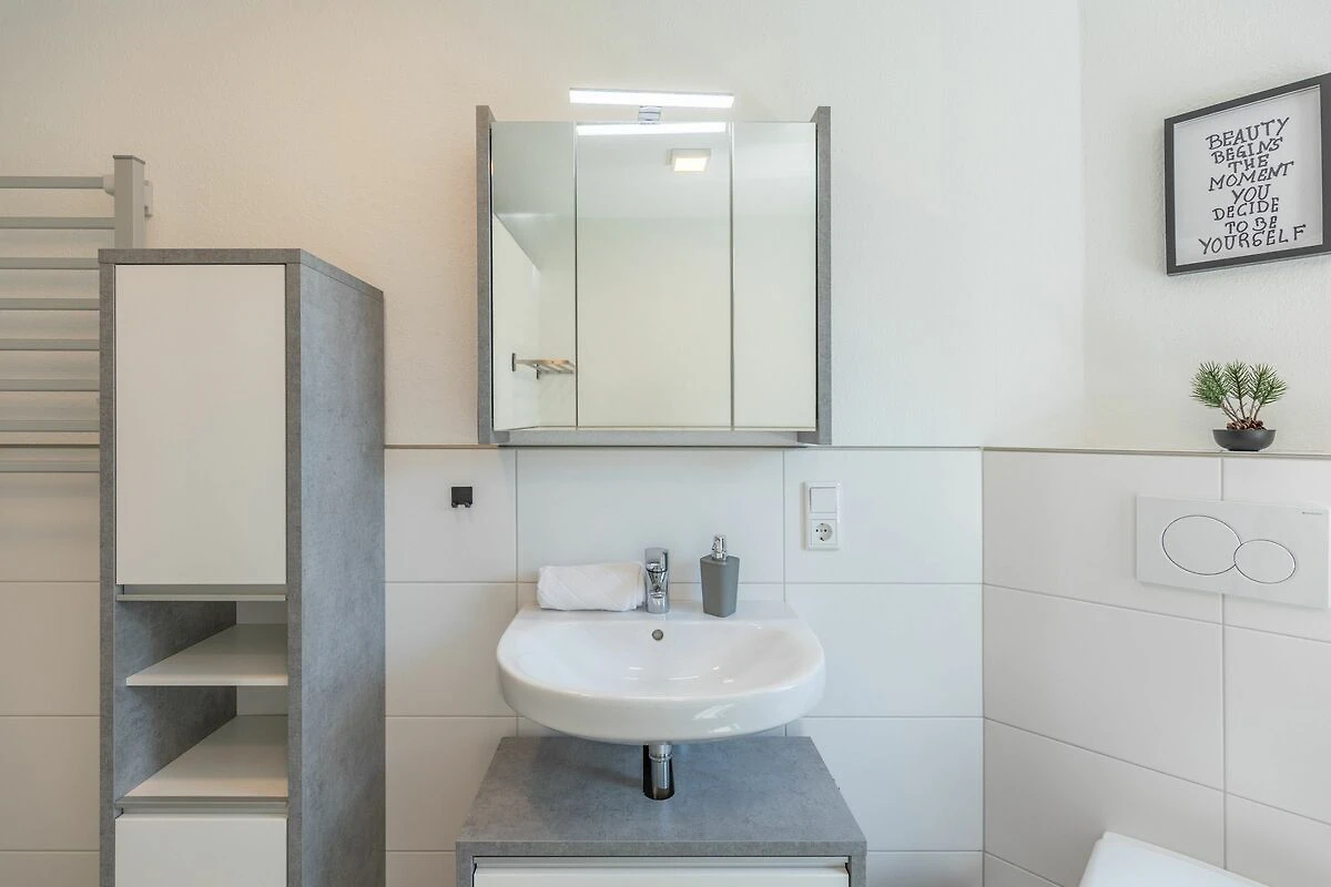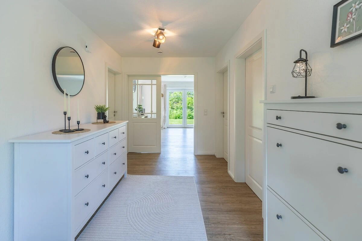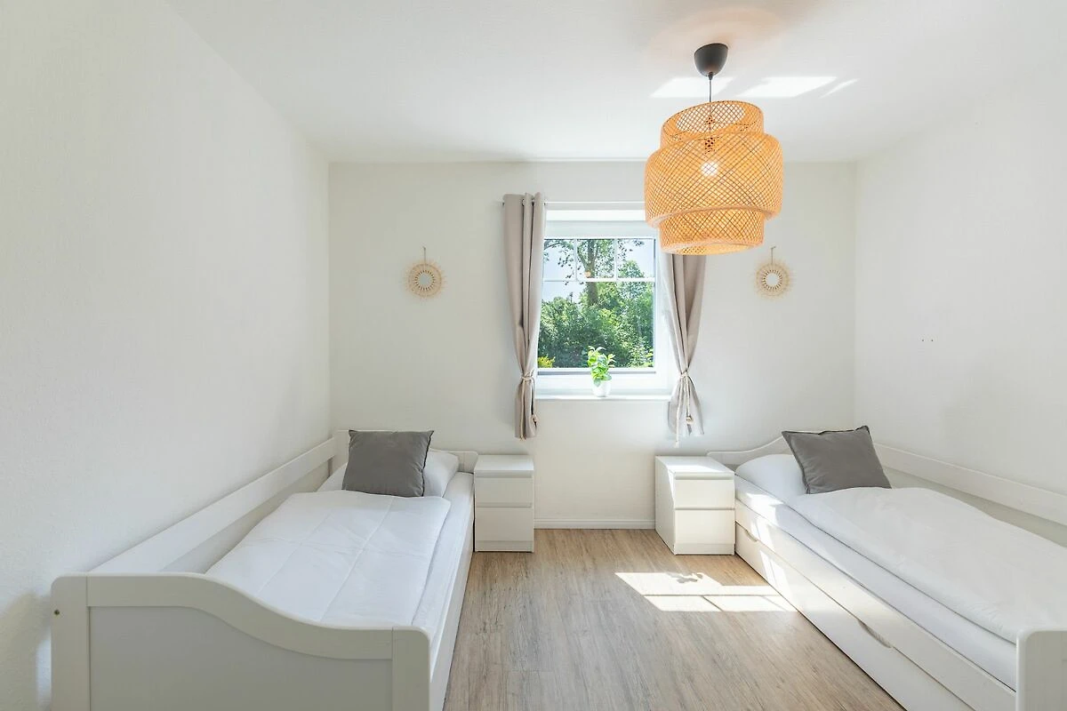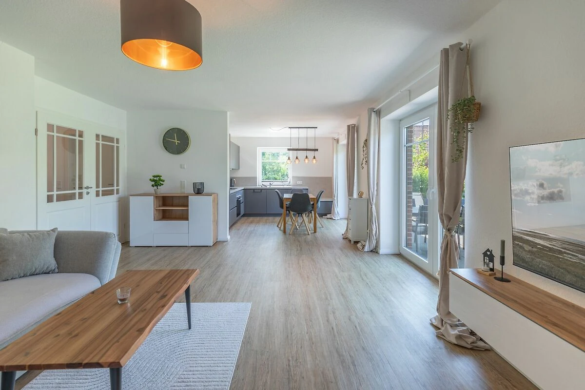 Ein sehr schönes Ferienhaus mit einer sehr komfortablen Küchen-Wohnzimmereinheit. Besonders die Küche ist hochwertig und gut ausgestattet. Das Begrüßungswasser sowie die nett verpackte "Erstausstattung" haben uns freudig überrascht. Die Lage ist ruhig, hat viele Wege in die Natur und lädt zum Wandern ein. Einkaufsmöglichkeiten sind schnell erreichbar und auch die Nordsee ist nicht allzu weit weg. Mit der freundlichen, liebenswürdigen und humorvollen Nachbarin aus der anderen Hälfte des Hauses, hatten wir nette Begegnungen, die wir genießen konnten. Gewünscht hätten wir uns, dass die Matratzen etwas weicher gewesen wären, man hatte das Gefühl auf einem Futon zu liegen. Rundherum konnten wir die Zeit genießen, haben uns wohl gefühlt und sagen danke.