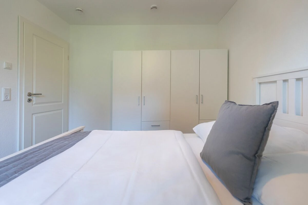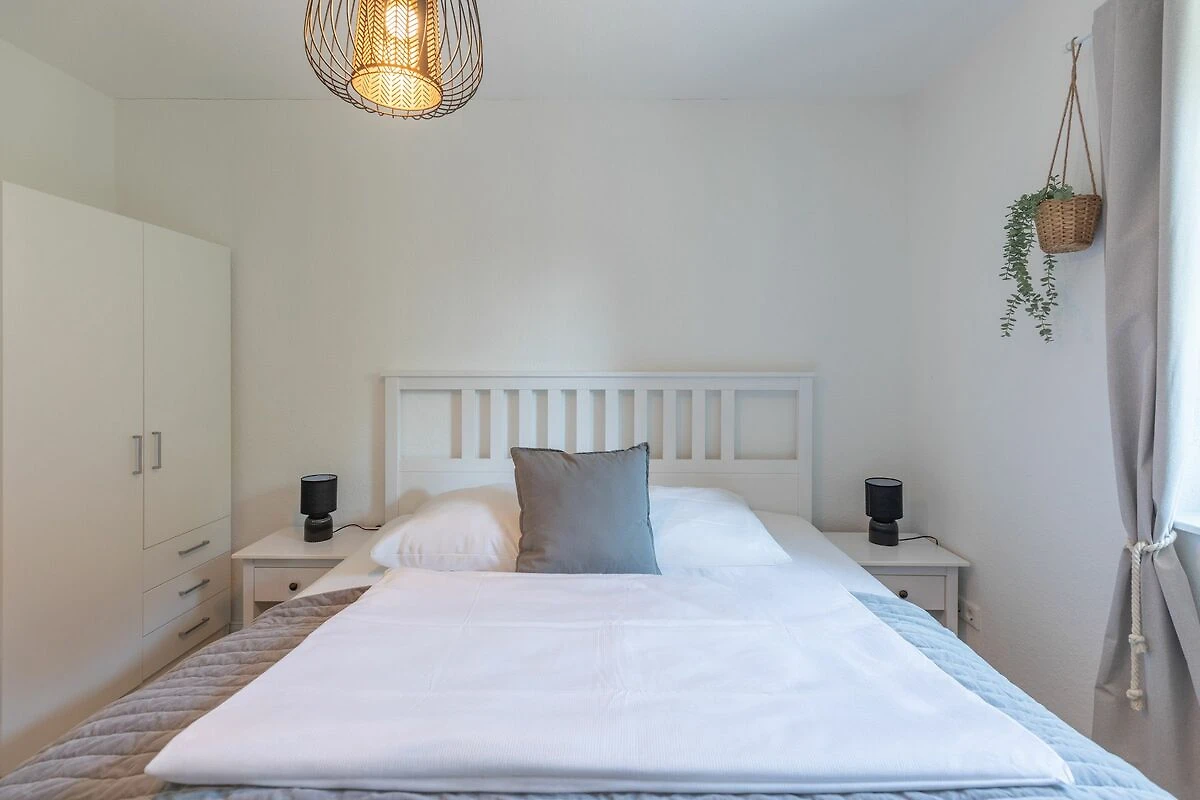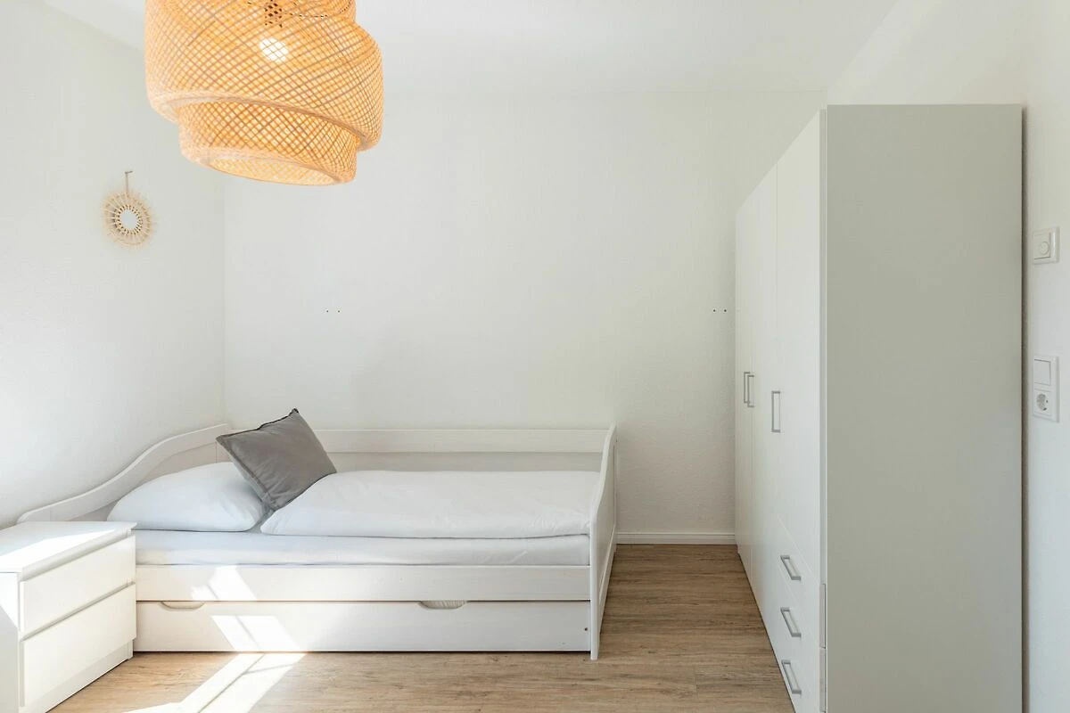 Dieses 2021 erbaute, rund 85 m² große Ferienhaus (Doppelhaushälfte) überzeugt durch seine großzügige Raumaufteilung und hochwertige Ausstattung. Alles befindet sich ebenerdig: Drei helle Zimmer, darunter zwei gemütliche Schlafzimmer und ein modernes Badezimmer, bieten Platz zum Wohlfühlen und Entspannen.