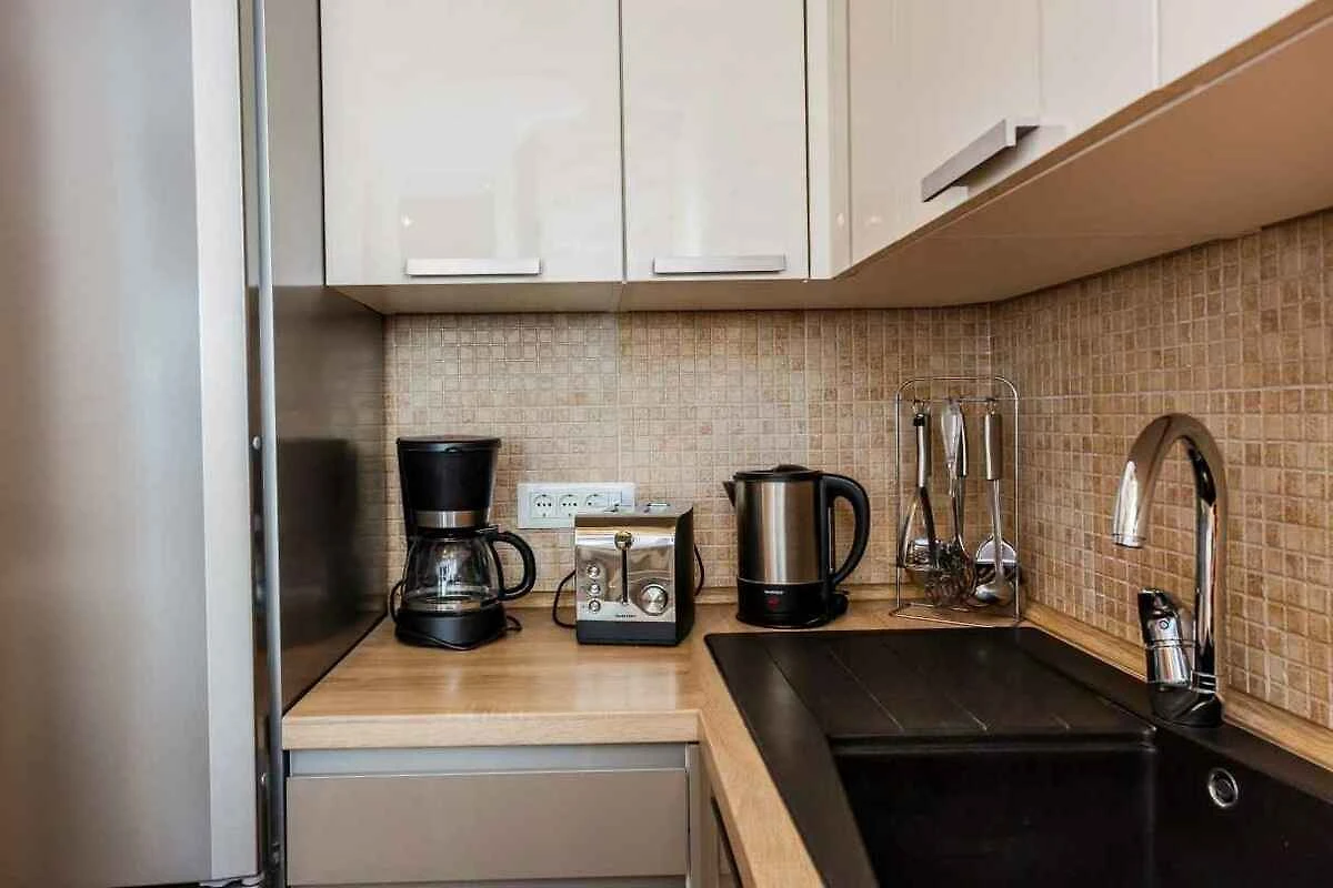 Wohnzimmer mit 1 Zusatzbett auf Couch/Sofa und Klimaanlage. 2 Schlafzimmer jeweils mit 1 Doppelbett. Küche mit Gasherd, Kühlschrank und Kaffeemaschine. 2 Bäder jeweils mit Waschmaschine und Dusche.