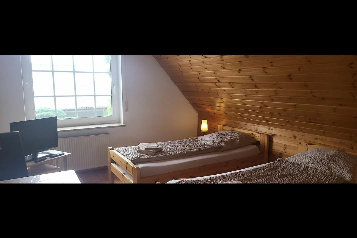 Monteurzimmer für Nichtraucher mit Doppelbett oder getrennt stehenden Betten für bis zu 2 Personen. Tisch mit Stühlen und Flachbild-TV.