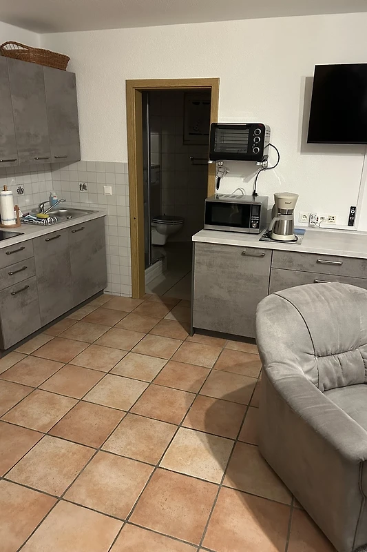 Die Wohnung zeichnet sich durch eine voll ausgestattete Küchenzeile aus, die keine Wünsche offen lässt: Spülmaschine, Mikrowelle, Wasserkocher und Kaffeemaschine stehen Ihnen zur Verfügung, um kulinarische Genüsse selbst zu kreieren. Der Wohnbereich ist mit einem gemütlichen Sofa, einem Flachbildfernseher und einer Auswahl an bequemen Sitzgelegenheiten ausgestattet, ideal für entspannte Abende.