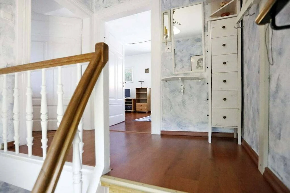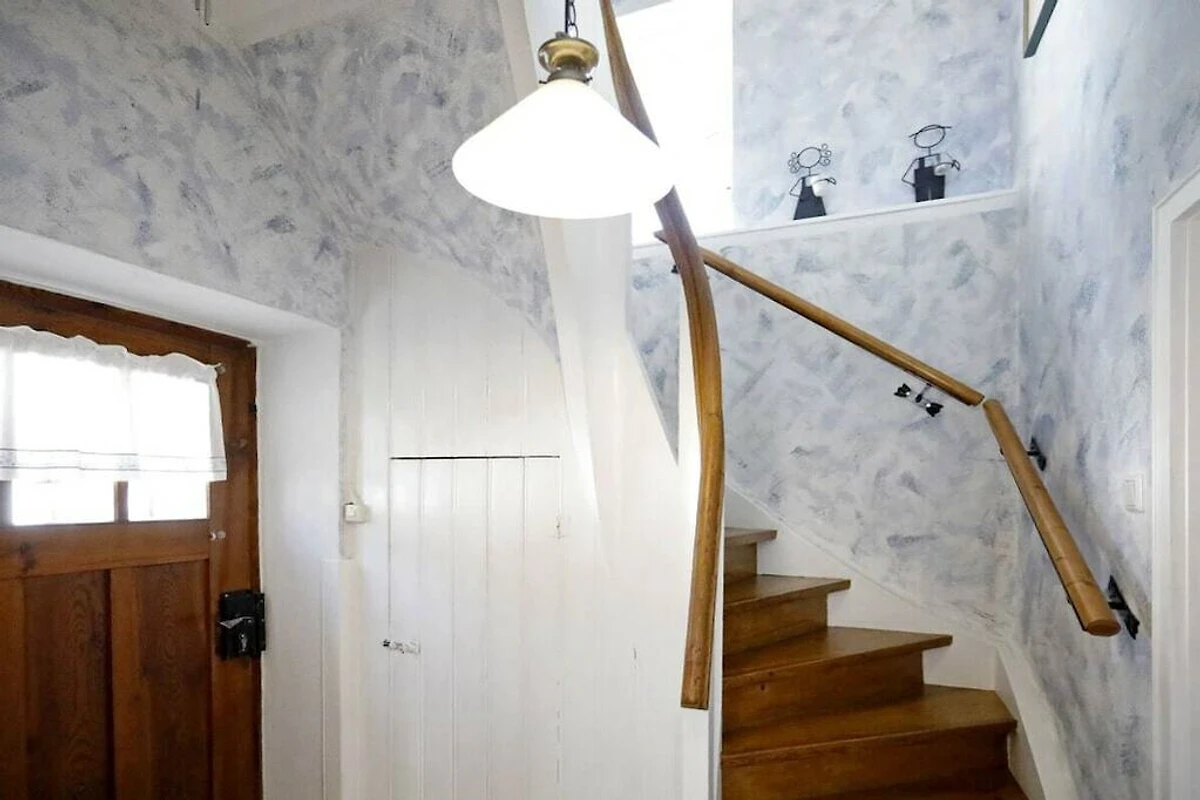In der 1. Etage: (Wohnzimmer(, , , Schrankbett 1 Person, TV, DVD-Spieler, Radio, CD-Spieler, Stereoanlage), offene Küche(, Kochnische, Herd, Radio, CD-Spieler, Kochplatte, Wasserkocher, Toaster, Kochherd, Kaffeemaschine, Backofen, Grill, Mikrowelle, Spülmaschine, Kühlschrank, Tiefkühlschrank, Küchenmaschine))