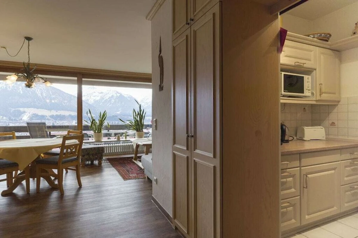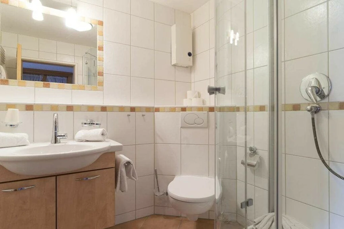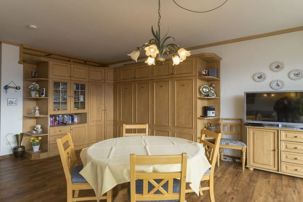 , , , , Wohnzimmer(, Bibliothek, Schrankbett für 2 Personen, TV, DVD-Spieler, Blu-ray-Player, Radio, CD-Spieler), Küche(, , Wasserkocher, Toaster, Kochherd, Kaffeemaschine, Mikrowelle, Spülmaschine, Kühlschrank, Tiefkühlschrank), Schlafzimmer(, , Doppelbett), Garage, Internet, Trockner, Waschmaschine, Balkon(, Gartenmöbel), Heizung, Bügeleisen, Telefon