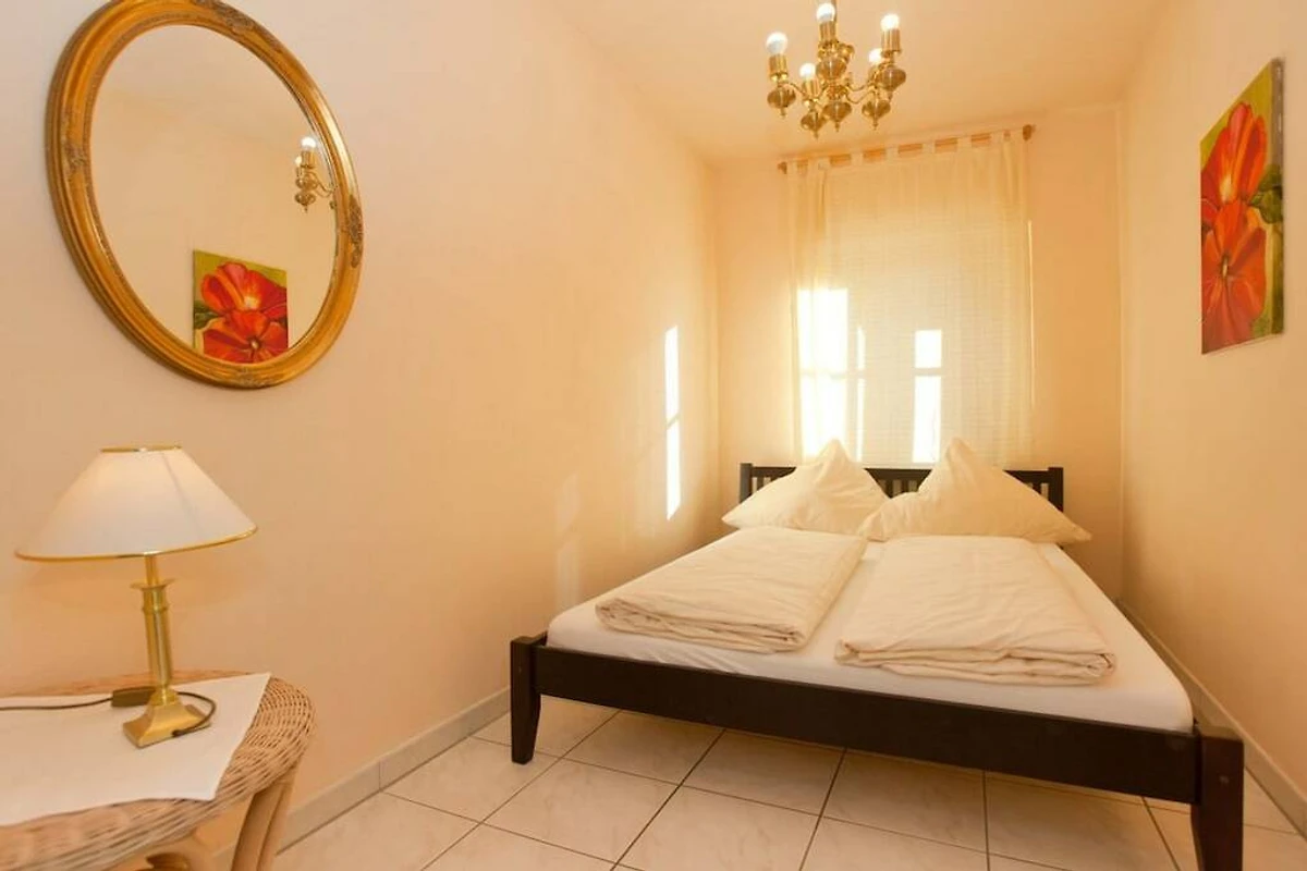 Im Haus erwartet Sie ein großes und helles Wohn- und Schlafzimmer mit einem separaten Einzelschlafzimmer. Eine freundliche und helle Küche mit Kühlschrank, Backrohr, Herd ... und einer neuen Spülmaschine.