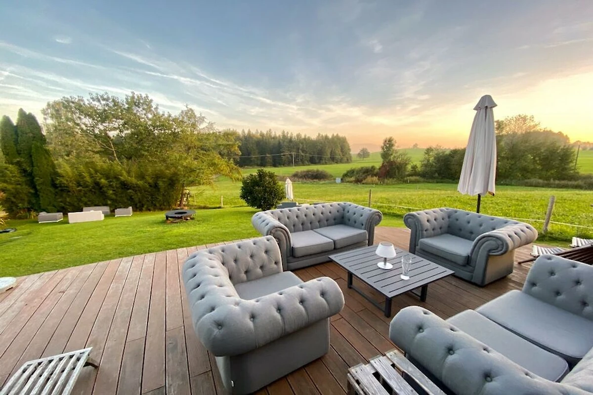 , , , , , , Eingangshalle(, ), Esszimmer(TV, TV, Radio), Küche(, Wasserkocher, Toaster, Toaster, Kochherd, Kaffeemaschine, Backofen, Spülmaschine, Kühlschrank), Wohn-/Schlafzimmer(, Doppelbett, TV, TV, Radio, CD-Spieler, Stereoanlage), Wohn/Esszimmer(TV, TV, Herd, Radio, CD-Spieler, Stereoanlage), Schlafzimmer(, , Doppelbett, TV, TV, TV, Radio), Schlafzimmer(Doppelbett), Ruheraum(Sauna, Türkisches Dampfbad, outdoor shower, Pool), Veranda(Gartenmöbel), Internet, Internet, Erste-Hilfe-Station, Trockner, Waschmaschine, Heizung, Terrasse(Gartenmöbel), Garten(, outdoor shower, Zentraler Grill, Kaminofen, Grill, Grill, Gartenmöbel, Liegen, Schaukel), Parkplatz, Fahrräder verfügbar, Bügelbrett, Bügeleisen, Trockenschrank