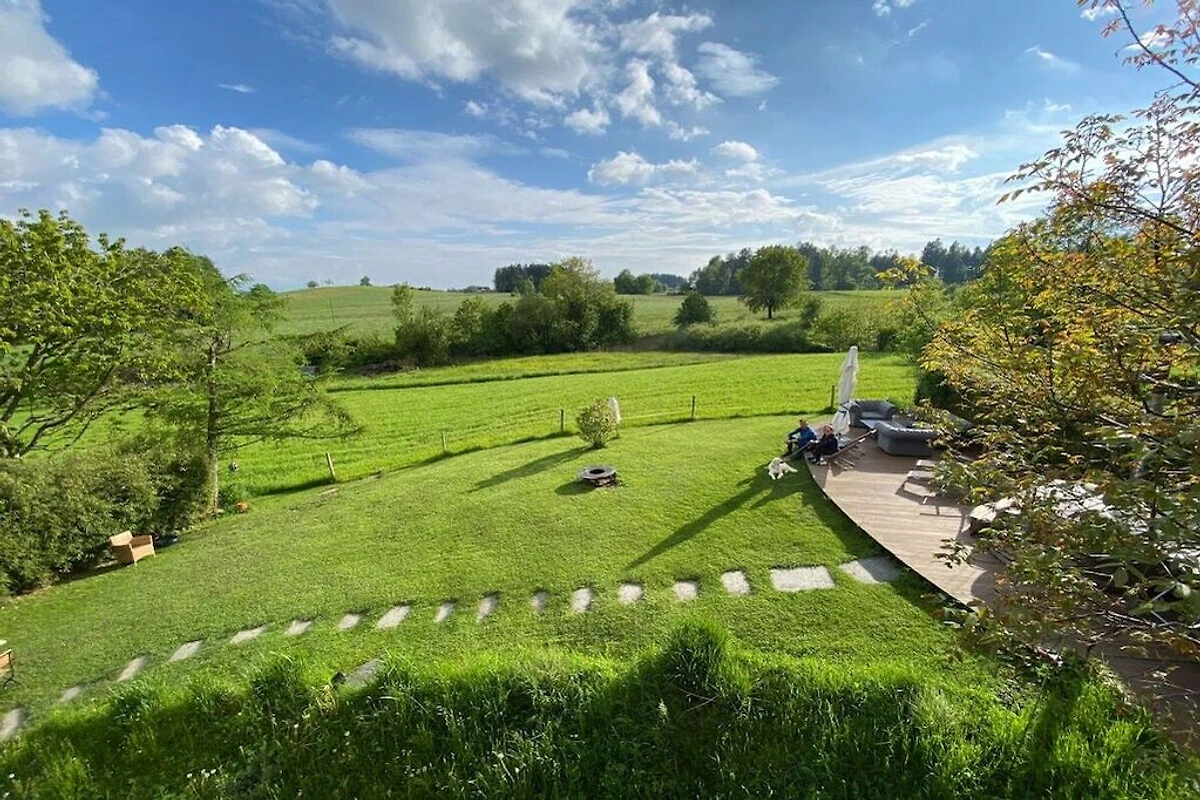 Das Tiny House Igluhut aus Estland ist das erste im süddeutschen Raum und befindet sich neben dem Ferienhaus Alpenpanorama Chalet mit zwei Ferienwohnungen die ebenfalls vermietet werden.