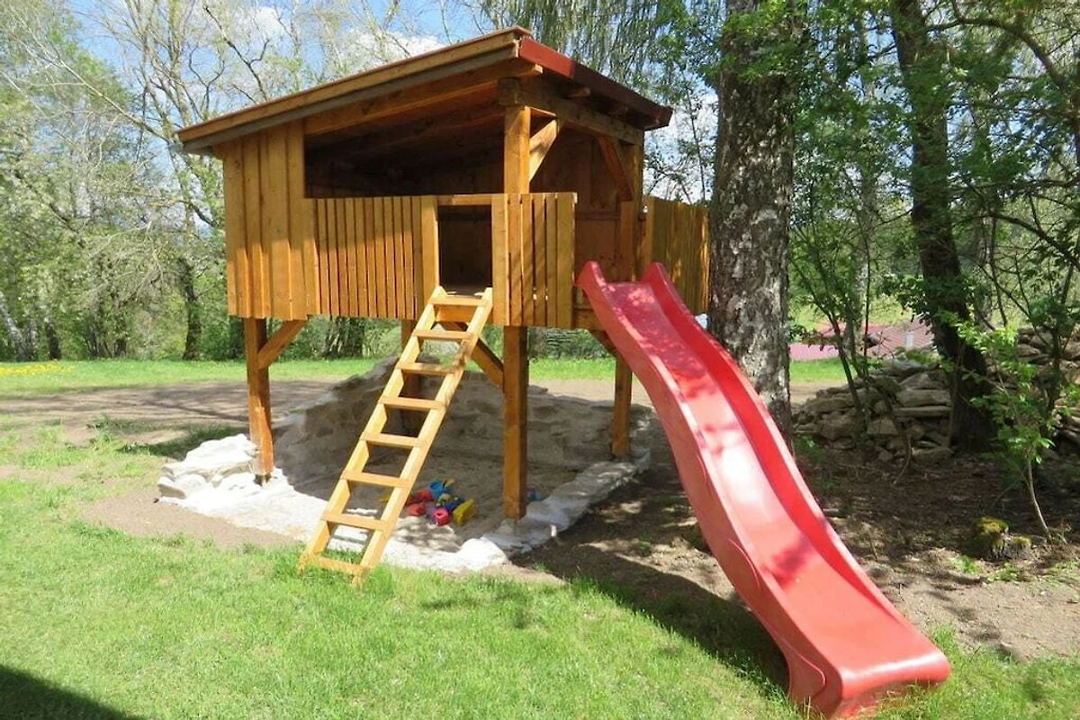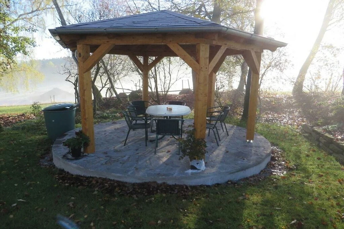 Im großzügigen Garten befinden sich ein Pavillon, ein Spieleturm mit Rutsche und Sandkasten, sowie einladende Plätze zum Entspannen und Verweilen.