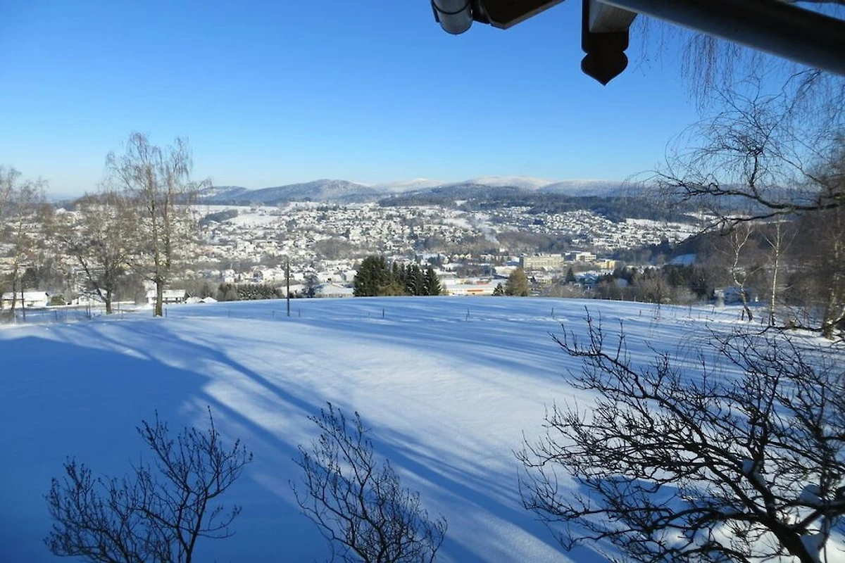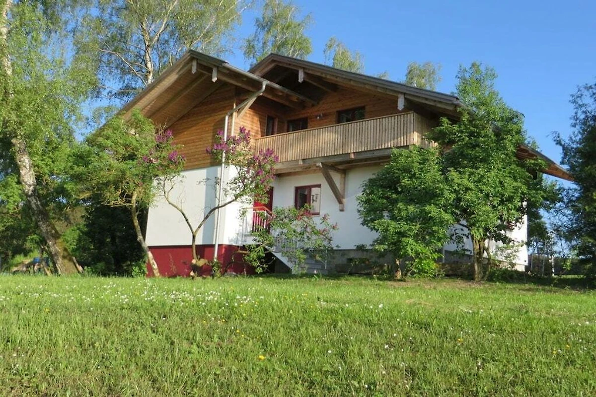 Das 2015 fertiggestellte Ferienhaus in Holzständerbauweise liegt hoch erhoben über der Kreisstadt Regen.