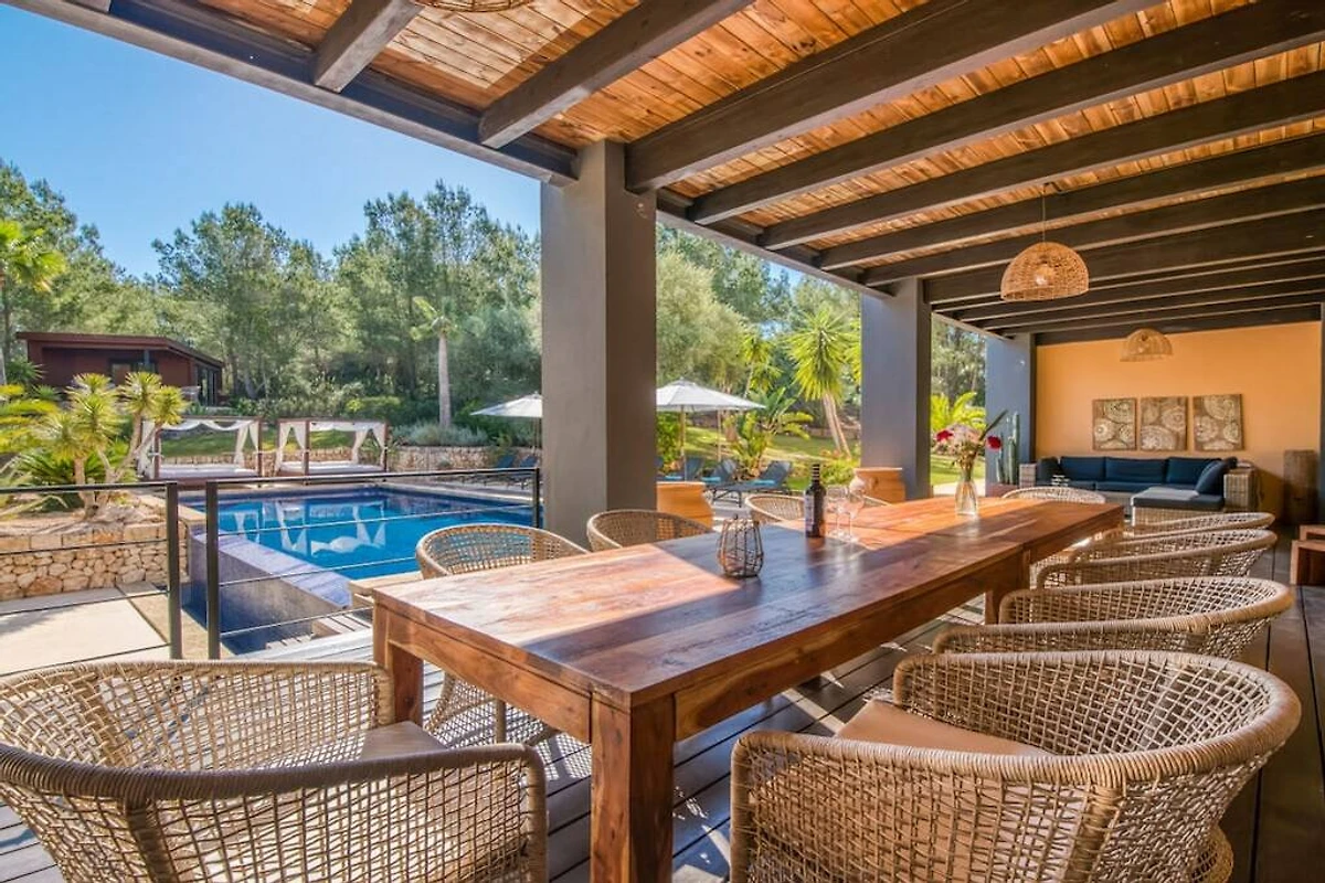 Die Möblierung passt zum modernen Stil der Finca, das Farbkonzept ist ruhig, der Stil ist reduziert. Eine Mischung aus warmen Holztönen, großformatigen, hellen Fliesen - kombiniert mit Glas und Stahl. Schöne Unikate, die wir gefunden haben, stehen neben Design-Klassikern, die unseren Augen schmeicheln, sie gleichzeitig beruhigen und erfrischen.