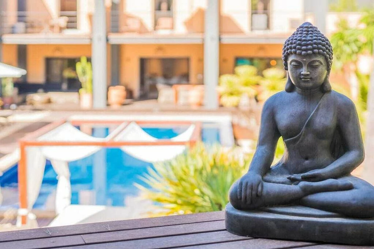 Dazu ein Salzwasserpool, in dem man tatsächlich schwimmen kann, eine Sauna und so gepflegte Außenanlagen mit Day-Beds, Liegen, Lounges, großen überdachten und offenen Terrassen, dass jeder Beach Club neidisch werden kann.