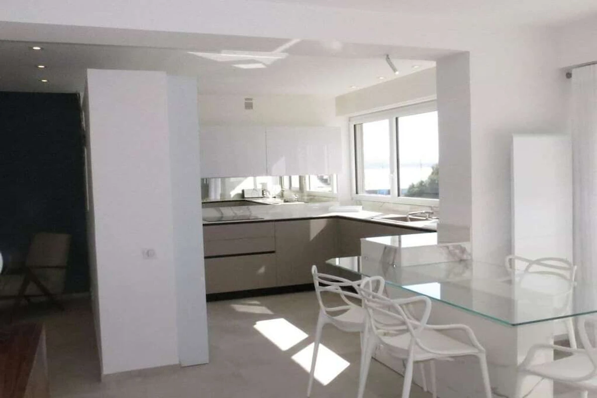 Die Unterkunft hat eine Fläche von 75 m² und verfügt über einen Aufzug. Es gibt eine Terrasse mit Gartenmöbeln, wo Sie den Ausblick auf das Meer und die schöne Landschaft bei einer Tasse Kaffee genießen können.