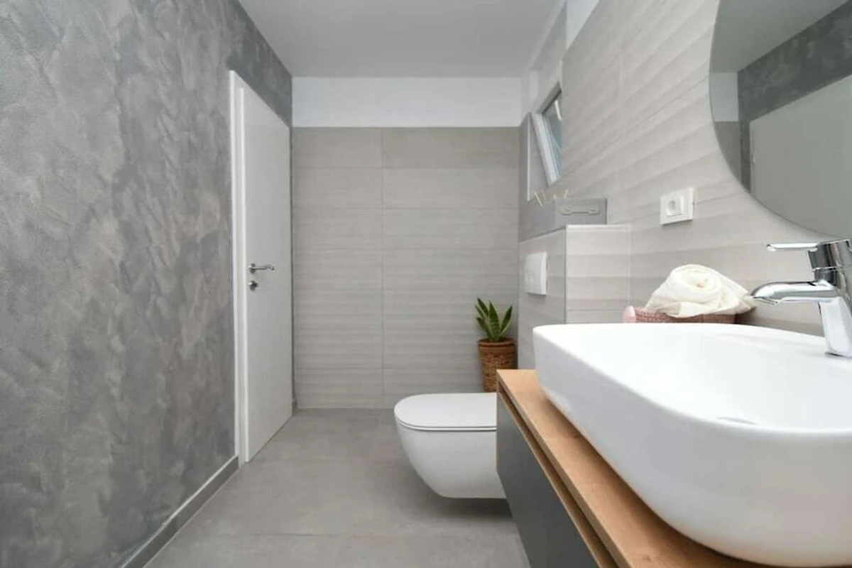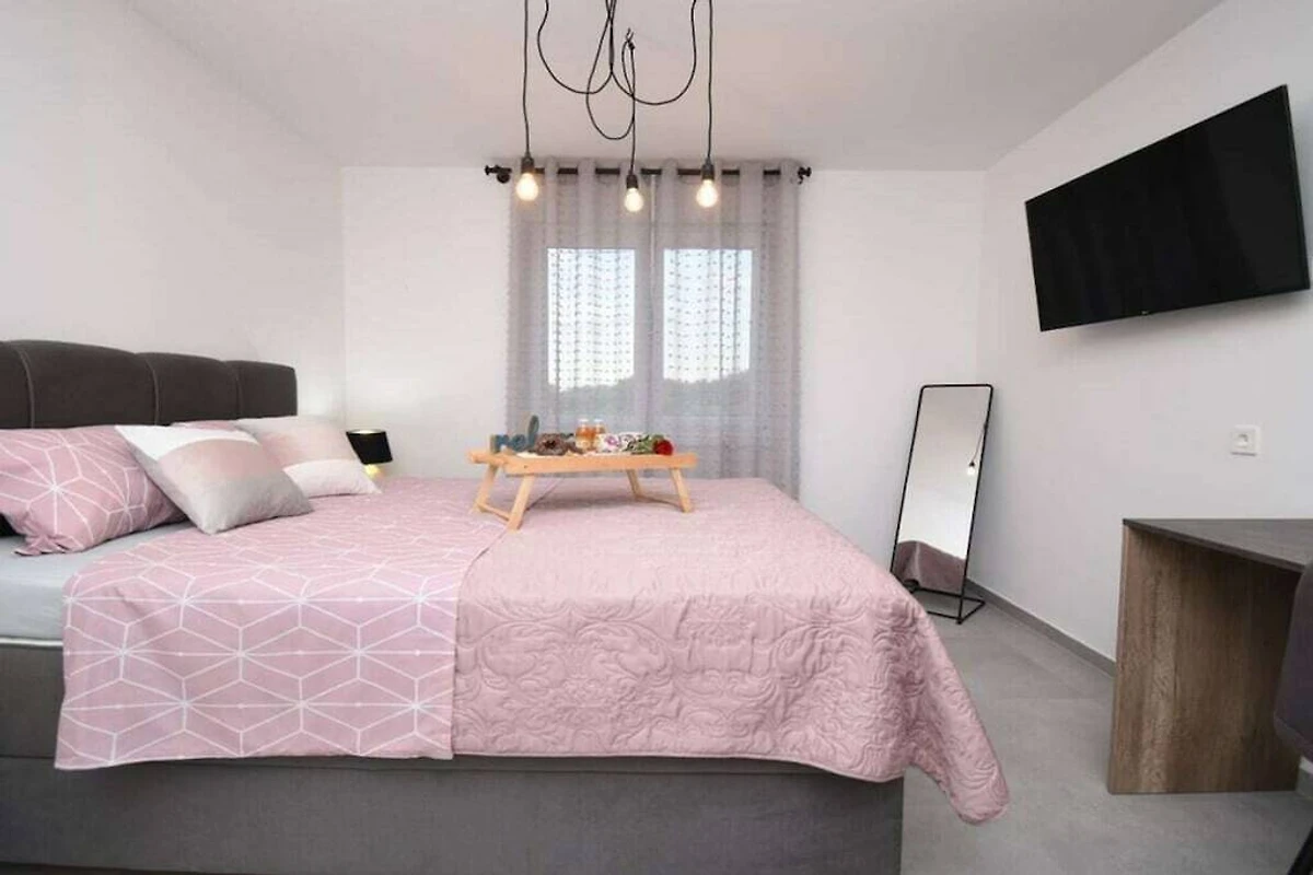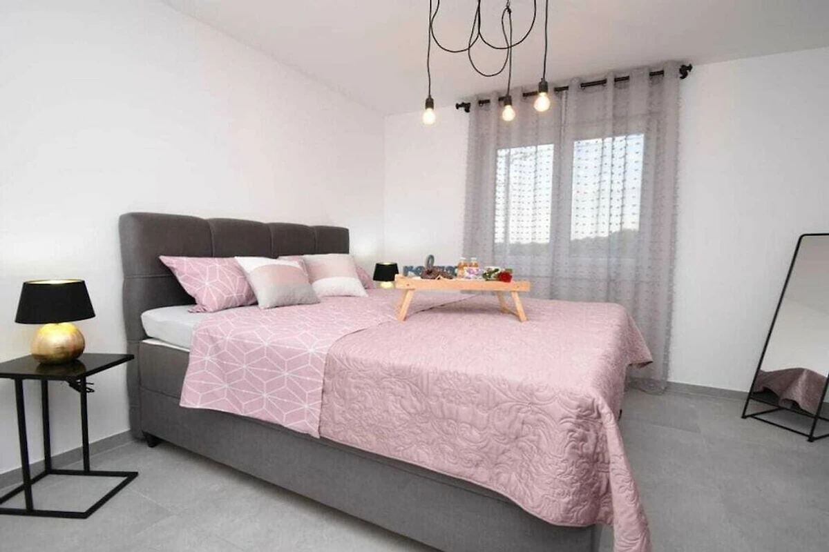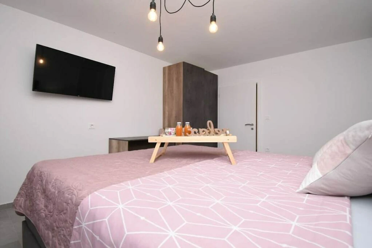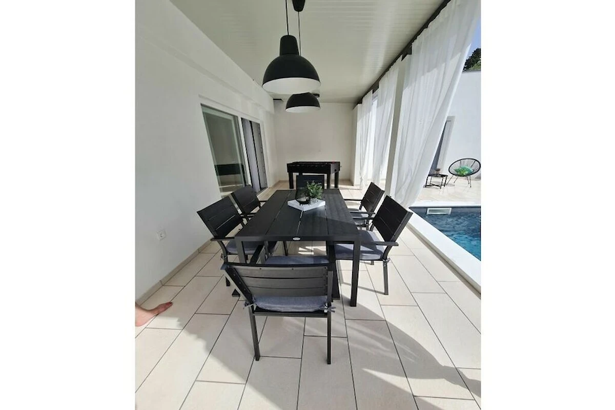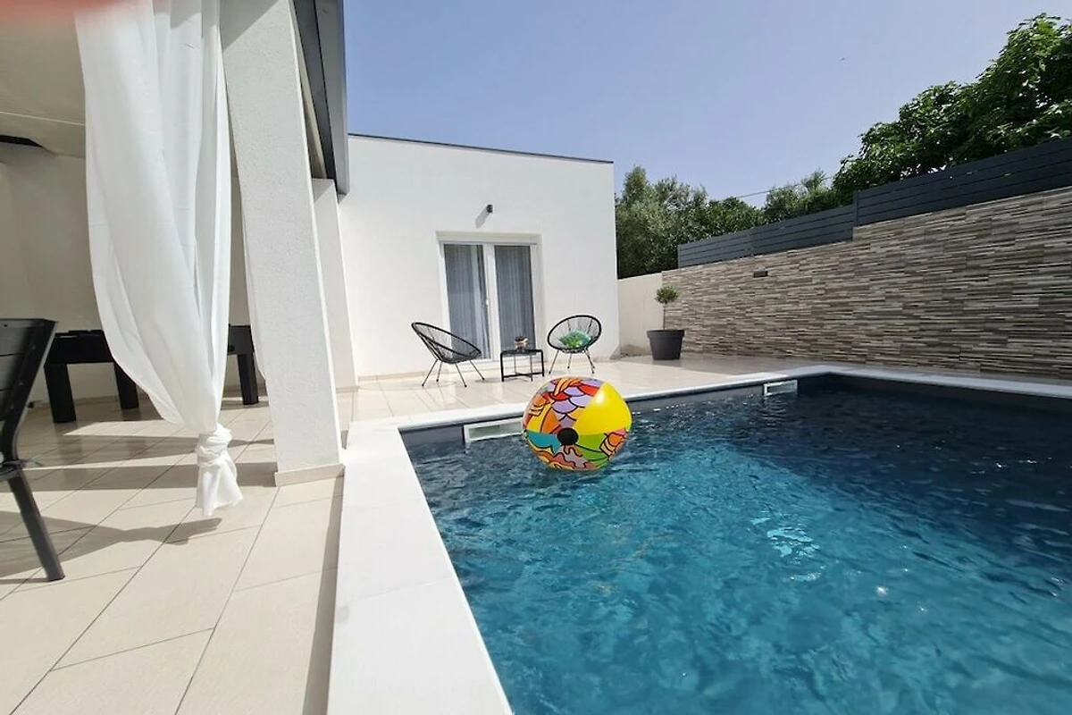 Villa Insieme II hat 2 moderne Schlafzimmer mit Kingsize-Betten und jedes Schlafzimmer hat ein Badezimmer. Wohnzimmer und Küche haben Ausgang auf Terrasse mit Pool und grünem Garten. Vor dem Haus sind 3 private Parkplätze vorhanden. Die Entfernung zum Stadtzentrum von Pula ist 4,5 km und die Entfernung zum Strand ist 1,8 km.