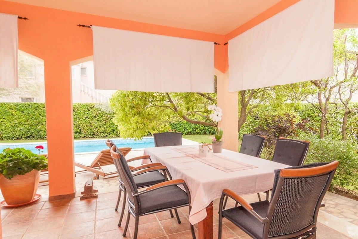 , , , Eingangshalle(, ), Schlafzimmer(, , Doppelbett, Doppelbett), Veranda(Gartenmöbel, Liegen), Veranda(Gartenmöbel, Liegen), Internet, Erste-Hilfe-Station, Waschmaschine, Garten(Zentraler Grill, Liegewiese, Gartenmöbel, Liegen, Pool, Gartenhaus), Parkplatz, Bügelbrett, Bügeleisen, Trockenschrank, Telefon