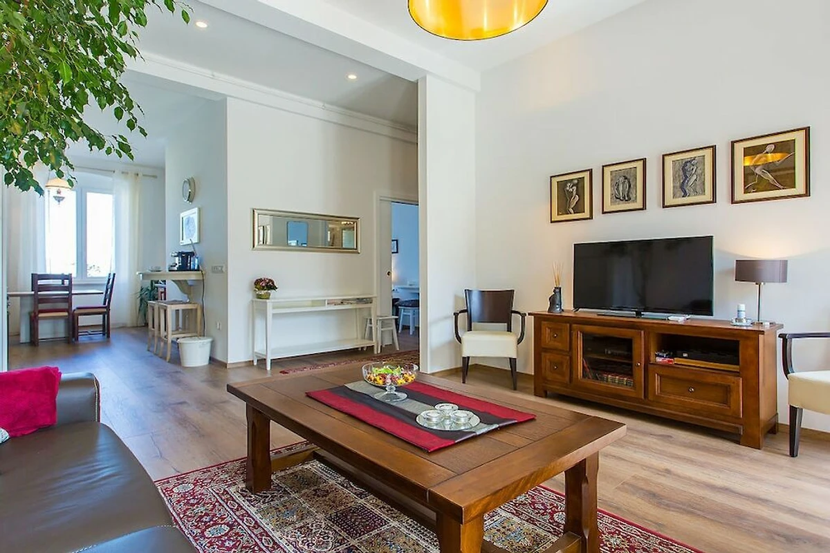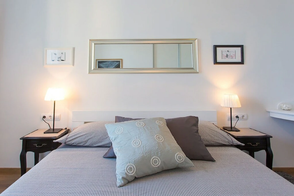 Das Apartment verfügt über einen geräumigen Wohnbereich mit einem bequemen Doppelschlafsofa und einem Kingsize-Bett und bietet ausreichend Schlafplatz für bis zu vier Gäste. Die moderne Küche ist komplett mit allen notwendigen Geräten ausgestattet, darunter Kühlschrank, Gefrierschrank, Backofen, Mikrowelle, Geschirrspüler und Kaffeemaschine, sodass Sie während Ihres Aufenthalts problemlos köstliche Mahlzeiten zubereiten können.