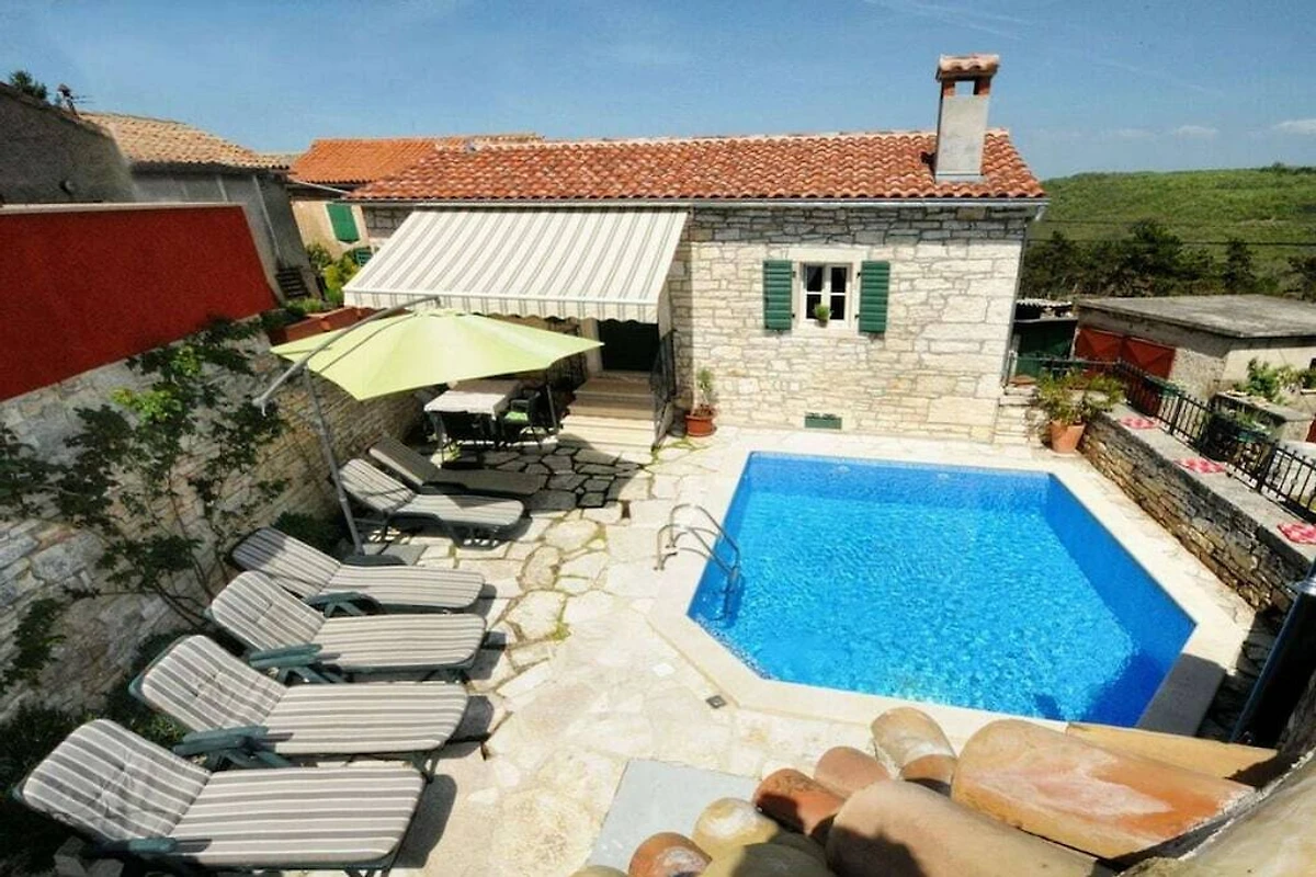 Casa Antignana ist ein traditionelles istrisches Steinhaus im Zentrum von Tinjan, Istrien, Kroatien. Es ist ein perfekter Ort, wenn Sie wie ein Einheimischer leben möchten. Das Ferienhaus wurde 2012 im ursprünglichen Stil und aus traditionellen Materialien umgebaut. Der vor Ort gefundene Stein wird wiederverwendet, alte Treppen werden jetzt in Kaminrahmen umgewandelt, altes vorderes Holztor ist noch vorhanden ... Dicke Wände halten es im Sommer relativ kühl. Es gibt jedoch Klimaanlagen in jedem Schlafzimmer und einem Wohnbereich.Das Wohnzimmer bietet Blick auf den Garten und den Pool. Das Haus besteht aus einer offenen Küche, einem Wohnzimmer und einem Badezimmer mit Dusche im ersten Stock. Im Erdgeschoss befinden sich zwei Schlafzimmer und ein kleines Badezimmer mit Dusche.
