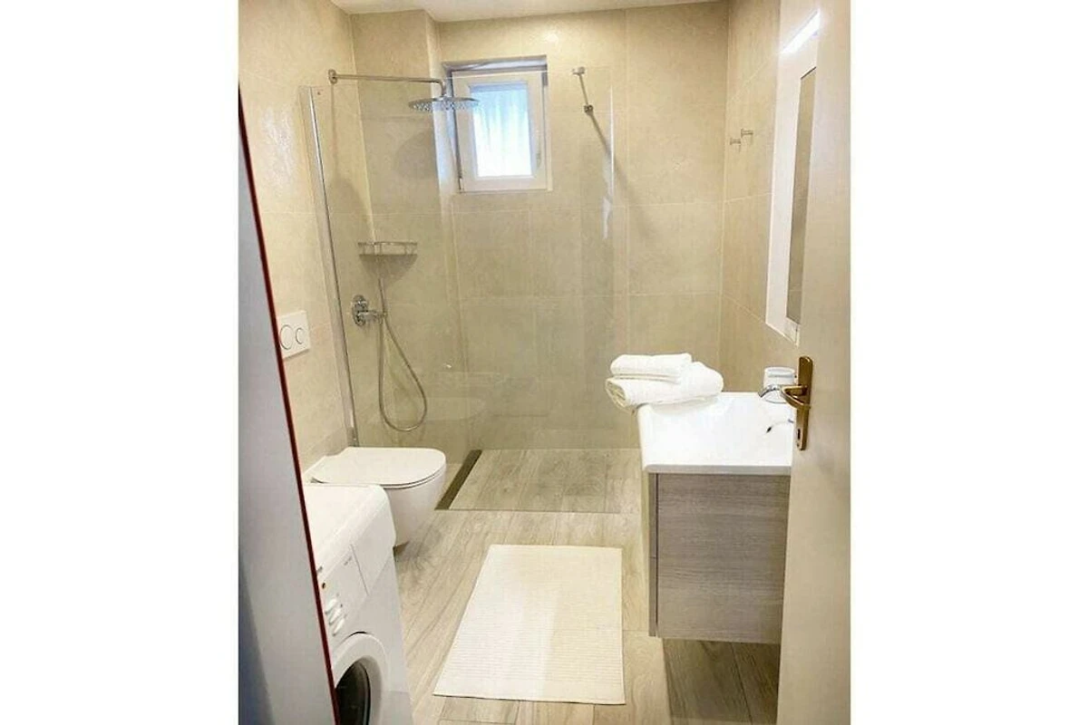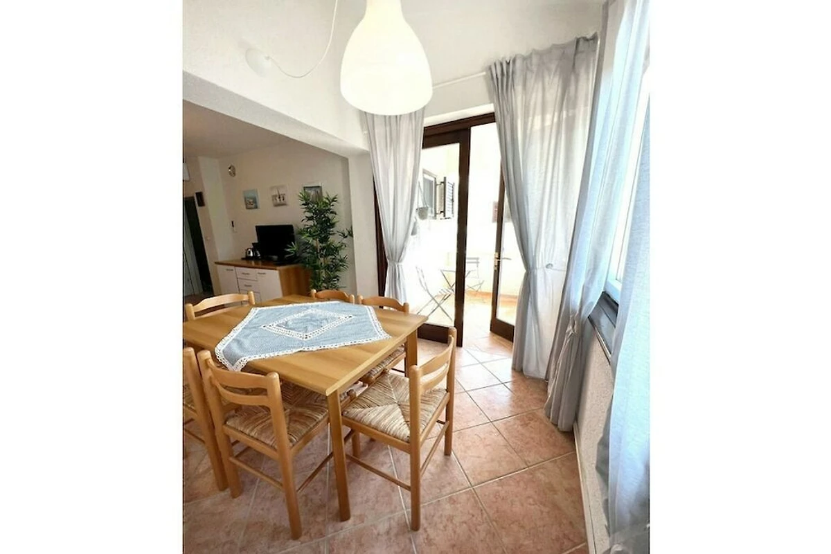 Es besteht aus einer Küche, einem Wohn- und Essbereich, zwei Schlafzimmern, eines mit einem Doppelbett und einem Einzelbett und das andere mit einem Doppelbett. Es bietet Platz für 5 Personen. Der Wohnbereich öffnet sich zu einem kleinen Balkon. Es gibt ein Badezimmer mit ebenerdiger Dusche. Es gibt einen Garten für die Nutzung des gesamten Gebäudes und die Möglichkeit, den Grill im Garten zu nutzen.
