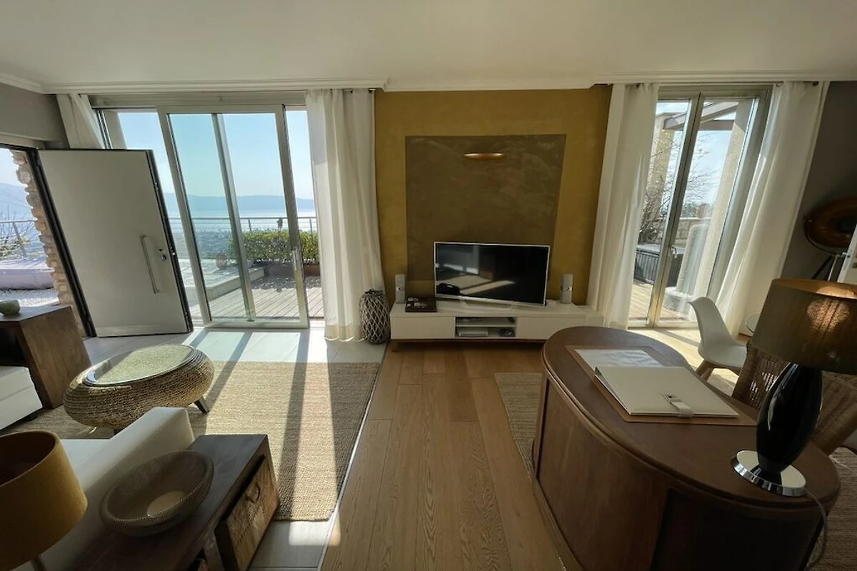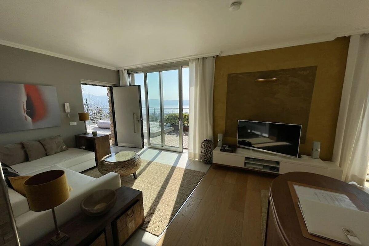 Am Top Level können Sie am 130 m² großen Swimmingpool mit Liegefläche verweilen. Auch von hier aus haben Sie eine atemberaubende Sicht auf den See und die Berge. Für unsere Gäste stehen auch hier Sonnenliegen bereit.