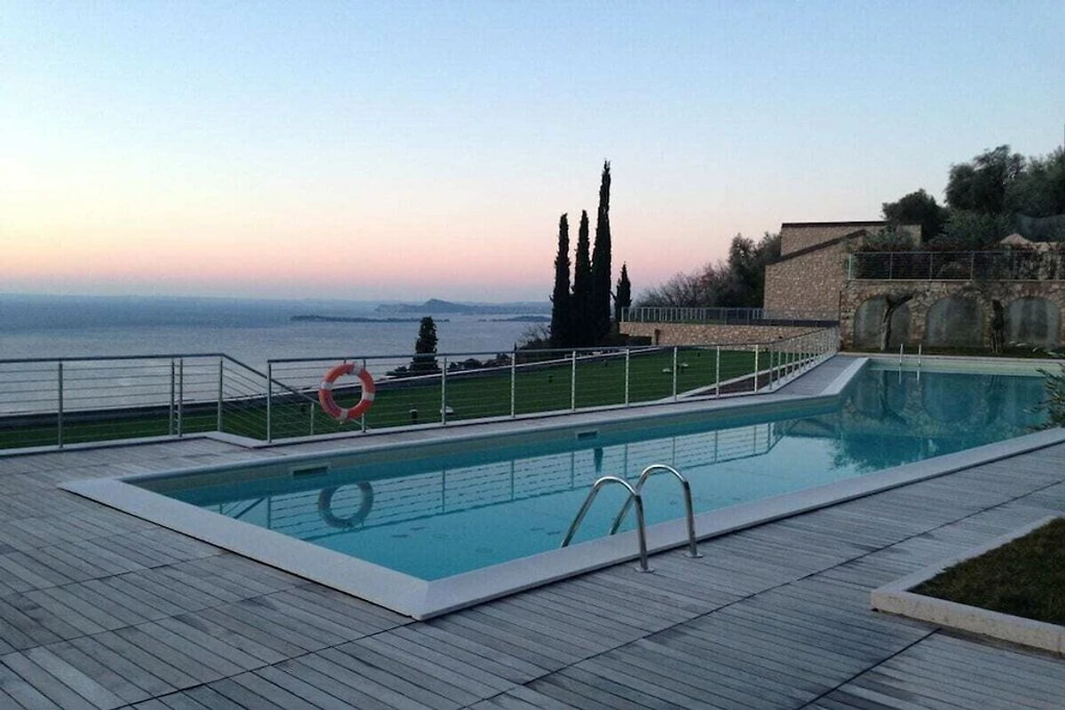 Regelmäßig renovierte und teils neu möblierte Ferienwohnung mit 30 m langem Pool und fantastischem See- und Bergblick.