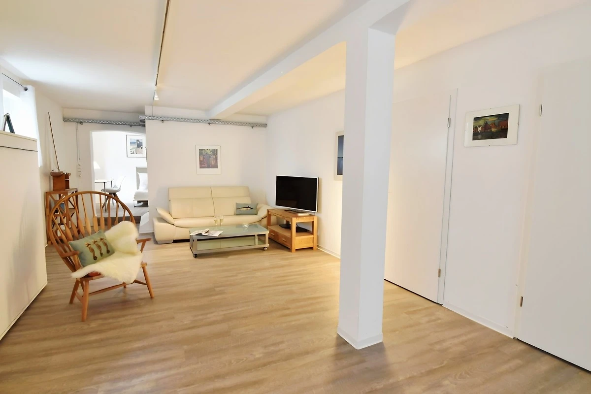 Das moderne Duschbad, WLAN, TV und eine eigene Waschmaschine runden die Ausstattung ab. Bitte beachte: Neben dem separaten Schlafzimmer sind die weiteren Schlafgelegenheiten offen gestaltet, sodass der Loft-Charakter bestehen bleibt. Auch Haustiere sind herzlich willkommen.