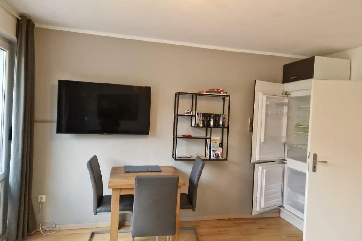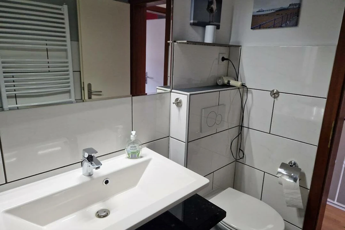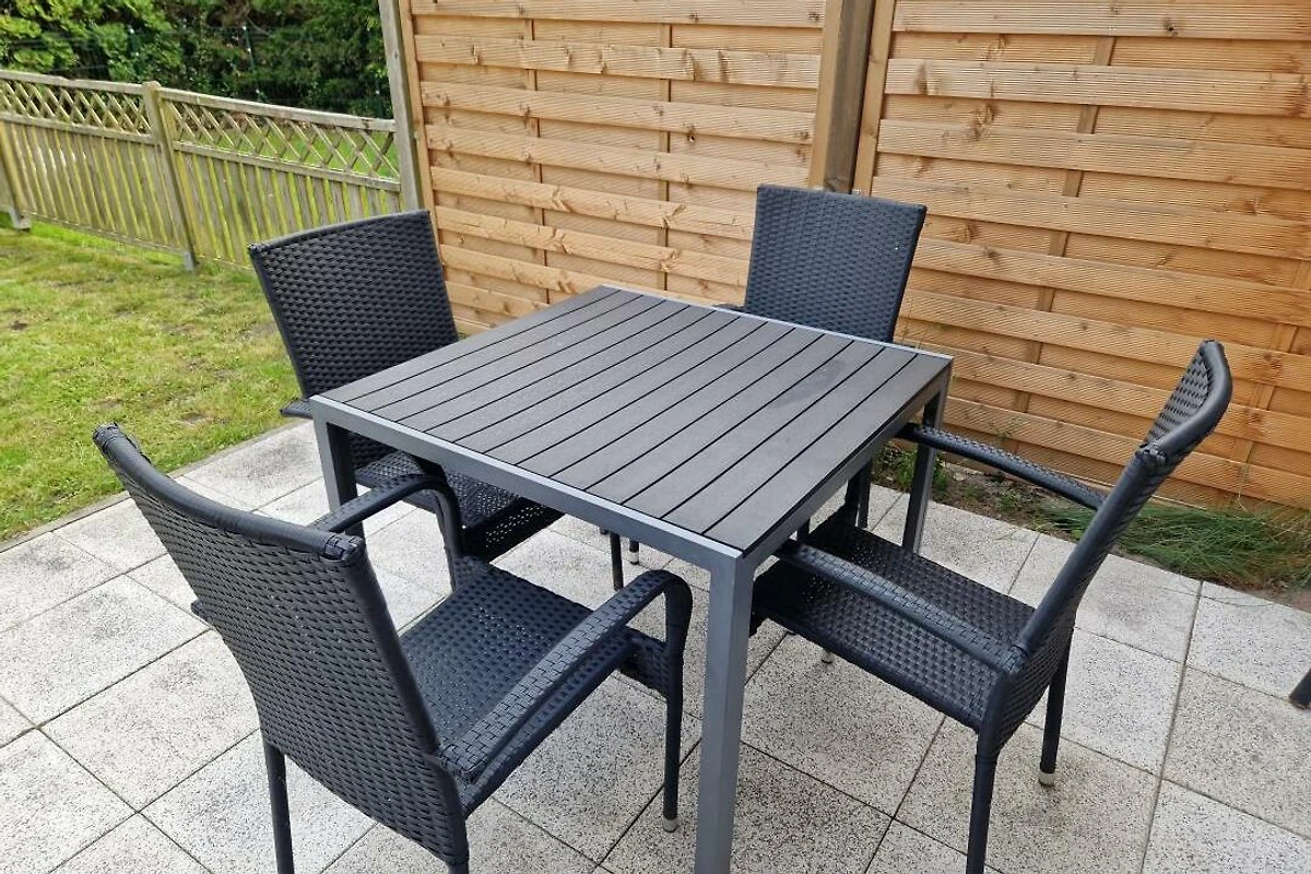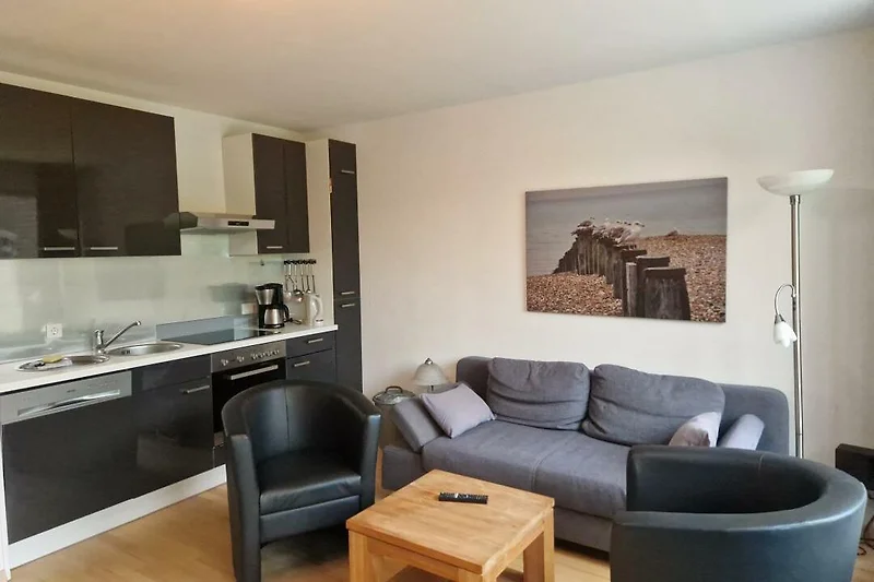 Willkommen in Hooksiel – einem charmanten Küstenort an der Nordsee, der Erholung, Natur und maritimes Flair vereint. In ruhiger und dennoch zentraler Lage erwartet Sie diese gemütliche 2-Zimmer-Ferienwohnung im Erdgeschoss, ideal für bis zu 3 Gäste. Die etwa 45 m² grosse Wohnung besticht durch ihre naturnahe Umgebung und den eingezäunten Garten in sonniger Südlage – perfekt zum Entspannen oder für den Urlaub mit Hund. Gartenmöbel stehen Ihnen selbstverständlich zur Verfügung. Das helle und freundlich eingerichtete Wohnzimmer lädt mit komfortabler Schlafcouch, Flachbild-TV und elektrischen Rollläden zum Verweilen ein. Die angrenzende Küche ist modern ausgestattet und verfügt über einen Geschirrspüler sowie einen praktischen Hochkühlschrank mit integriertem Gefrierfach. Im separaten Schlafzimmer sorgt ein 1,80 m breites Doppelbett für erholsame Nächte. Ein geräumiger Kleiderschrank und ein grosser Spiegel bieten ausreichend Stauraum und Komfort. Das Badezimmer wurde modernisiert und bietet nicht nur zeitgemässes Design, sondern auch viel Ablagefläche für Ihre persönlichen Dinge. Im Flur finden Sie eine praktische Garderobenecke mit Spiegel sowie ein Regal für Schuhe. Für gemütliche Stunden stehen Ihnen kuschelige Decken zur Verfügung. Für Haustiere fällt eine erweiterte Reinigungspauschale an. Geben Sie im Buchungsanschluss gerne Ihren Hund mit an. Hierfür fällt eine Gebühr in Höhe von 25 Euro an. Bettwäsche und Handtücher können auf Wunsch für 20 Euro pro Person hinzugebucht werden.