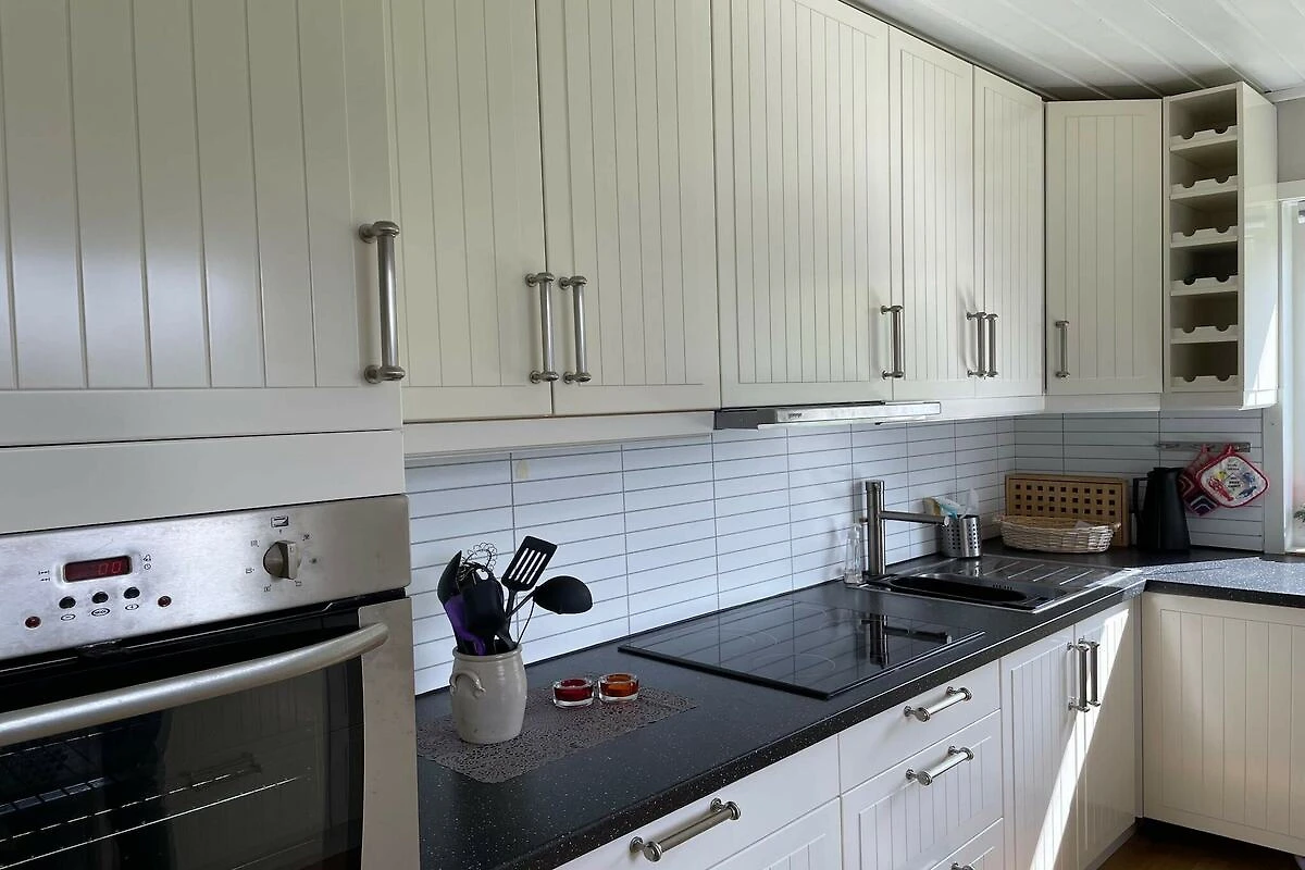 Offene Küche(Kochherd(elektrisch), Dunstabzugshaube, Kaffeemaschine(Filter), Waffeleisen, Mikrowelle, Spülmaschine, Kühlschrank, Tiefkühlschrank(200-249L), Trockner, Waschmaschine, Hochstuhl), Wohn-/Schlafzimmer(35 m2)(TV(Deutsch Fernsehsender, norwegische Fernsehsender)), Schlafzimmer(Doppelbett, Kinderbett, Kinderbett), Schlafzimmer(Doppelbett), Schlafzimmer(Einzelbett), Schlafzimmer(2x Einzelbett), Badezimmer(Fußbodenheizung)(Waschbecken, Dusche, Toilette), Badezimmer(Fußbodenheizung)(Waschbecken, Sitzbadewanne, Toilette), Heizung(elektrisch), Terrasse(35 m2), Terrasse(überdacht, 8 m2), Garten, Gartenmöbel, Grill, Parkplatz, Fischreinigungstisch, Luft-Luft-Wärmepumpe