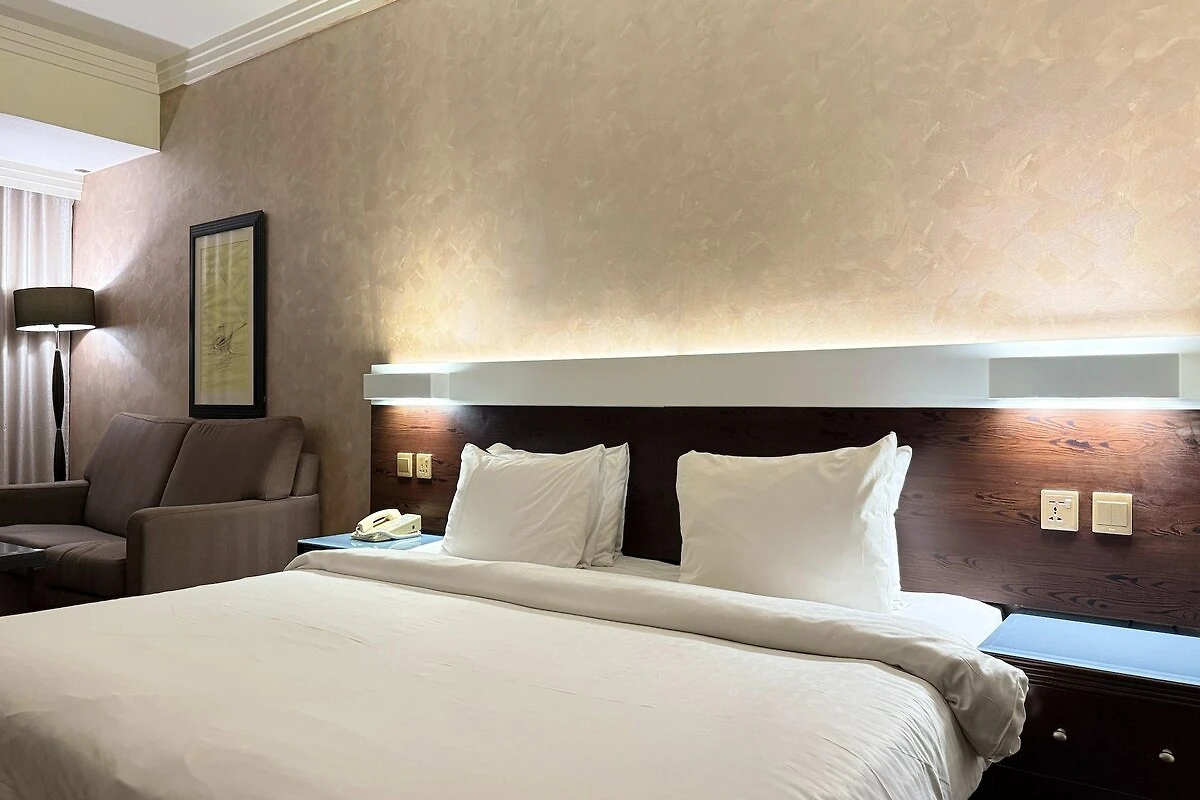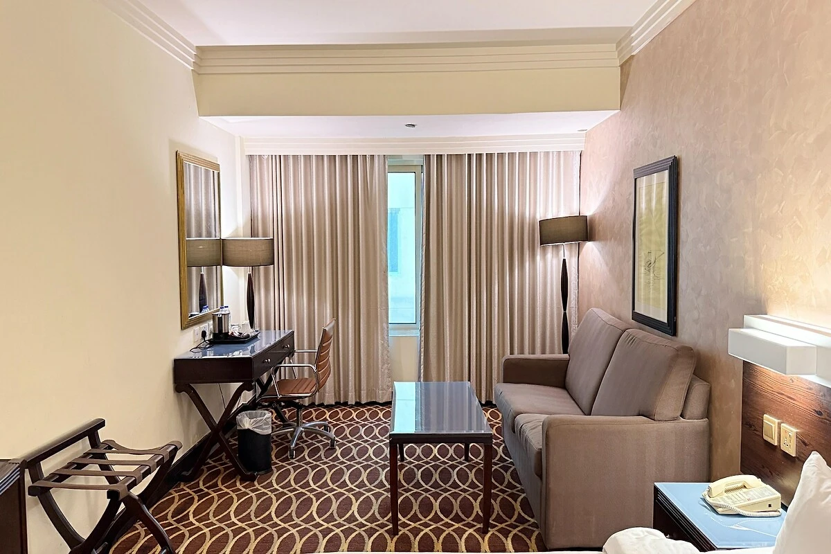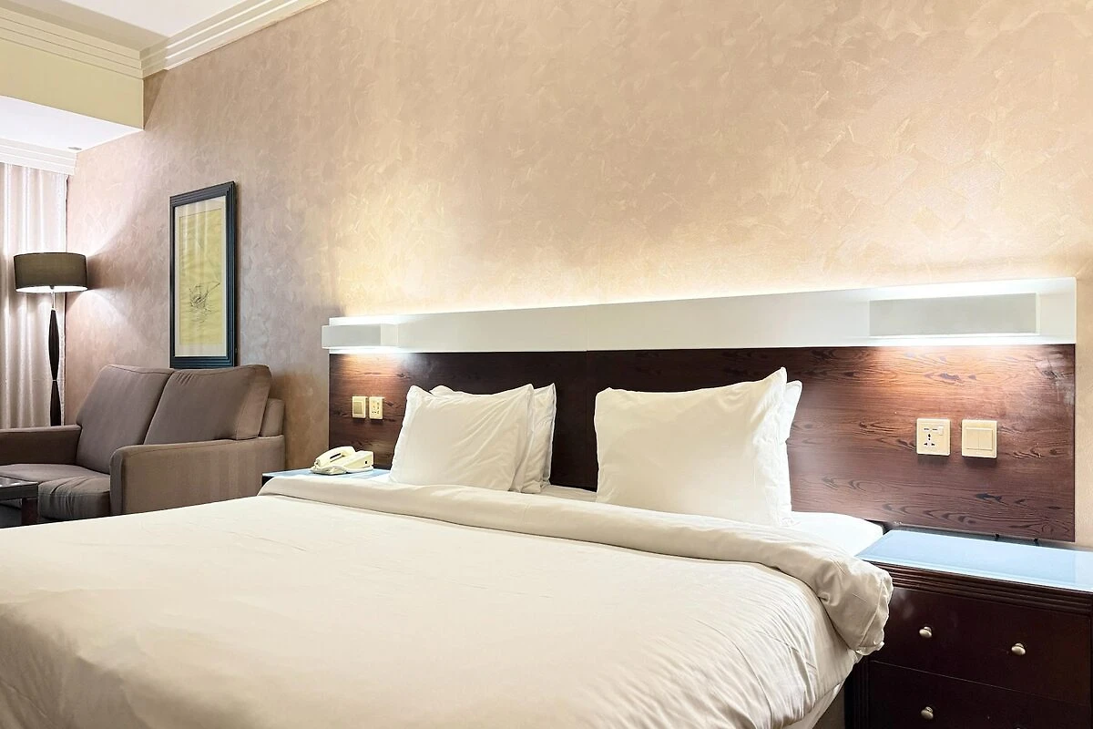 Das Hotel bietet verschiedene Zimmerkategorien wie Deluxe King, Deluxe Queen, Deluxe Twin, Superior King/Twin, Executive- und Junior-Suiten, Royal Suite und geräumige Familienzimmer. Jedes Zimmer ist komfortabel eingerichtet und verfügt über Klimaanlage, Flachbildfernseher mit Satellitenempfang, Minibar, Tee- und Kaffeezubehör sowie ein eigenes Bad mit kostenlosen Pflegeprodukten. Viele Zimmer bieten zudem ein Sofa oder eine Sitzecke, einen Schreibtisch und Stadtblick.