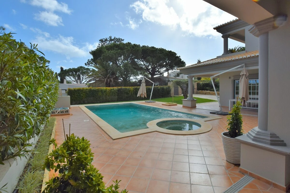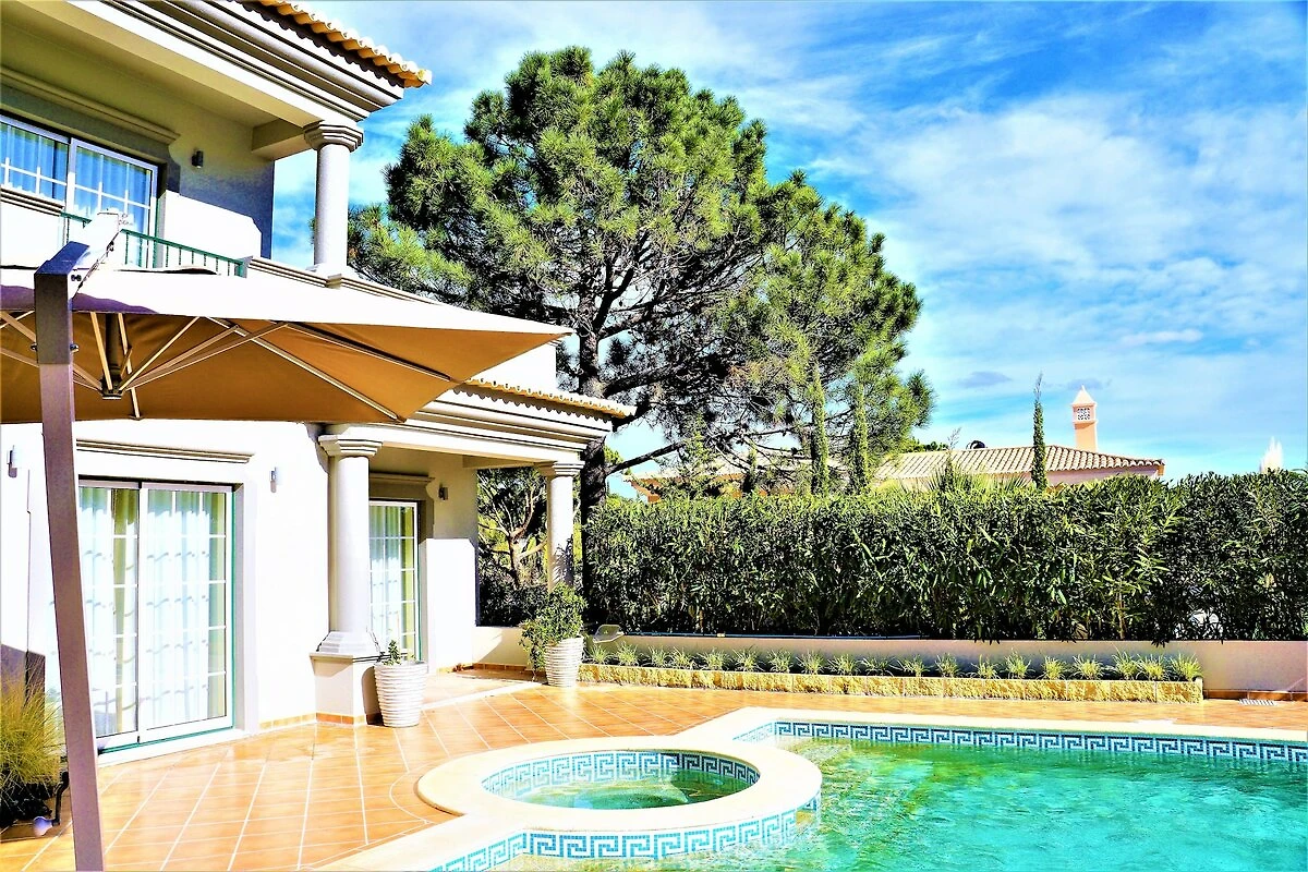 Luxuriöse, kürzlich renovierte Villa mit 4 Schlafzimmern, geschmackvoll eingerichtet, mit Pool, Terrassen und Garten zwischen Quinta do Lago und Vale do Lobo, nur 5 Gehminuten vom Strand entfernt. Die Gegend ist von zahlreichen Golfplätzen umgeben. Klimaanlage in allen Schlafzimmern und im Wohn- / Esszimmer. Kostenlose Highspeed-WLAN. Ein idealer Ort für Familien mit Kindern.