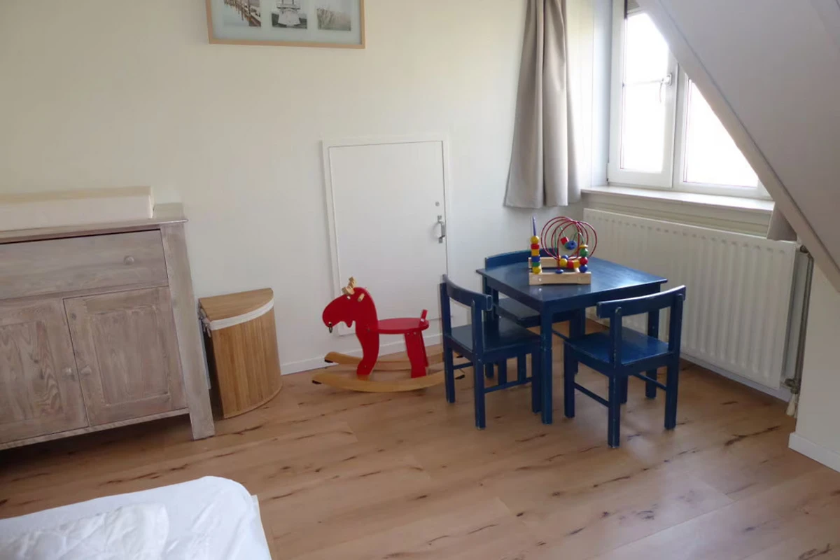 Für die Kleinen gibt es Kindertisch, Stühle und eine Maltafel.