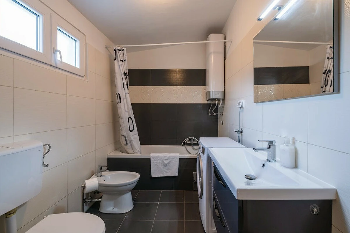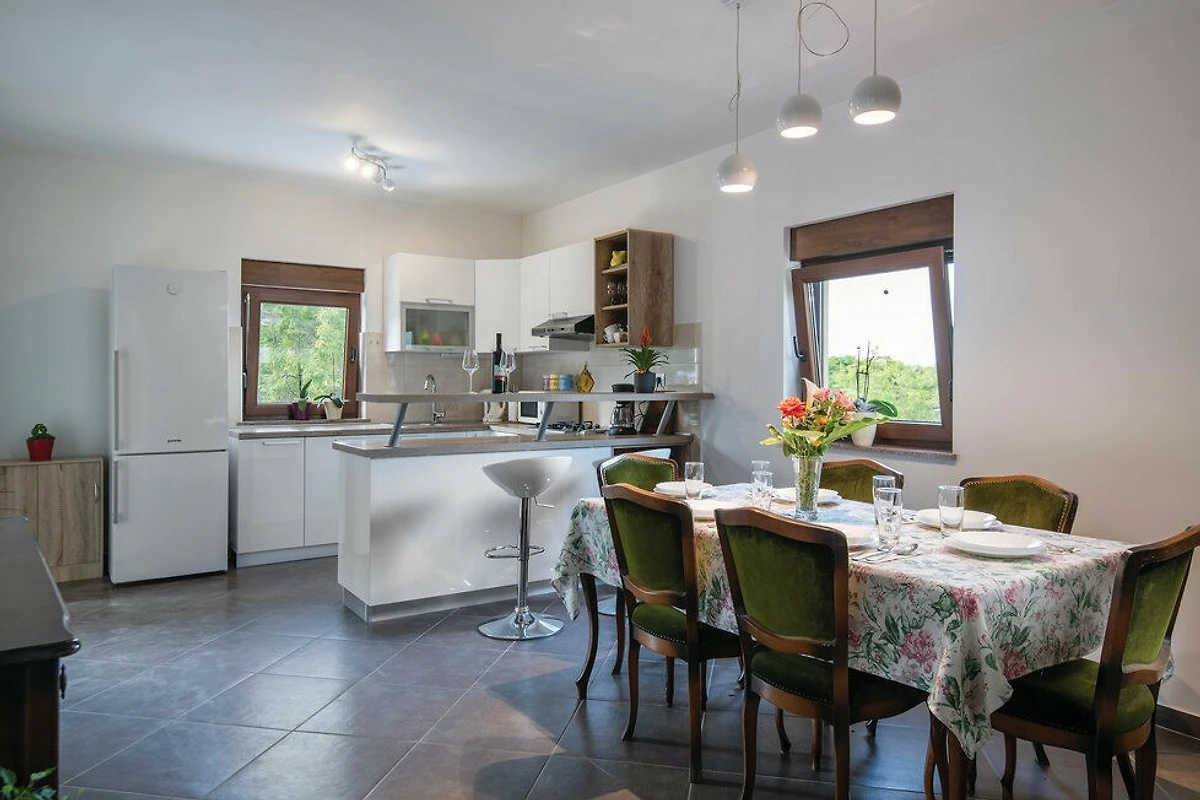 Praktische Annehmlichkeiten umfassen 3 private Aussenparkplätze. Haustierbesitzer werden erfreut sein zu erfahren, dass ein wohlerzogenes Haustier willkommen ist. Die Villa befindet sich nur 900 m von einem lokalen Supermarkt entfernt, 5 km von einem sandigen Strand in Medulin und 10 km von der historischen Stadt Pula.