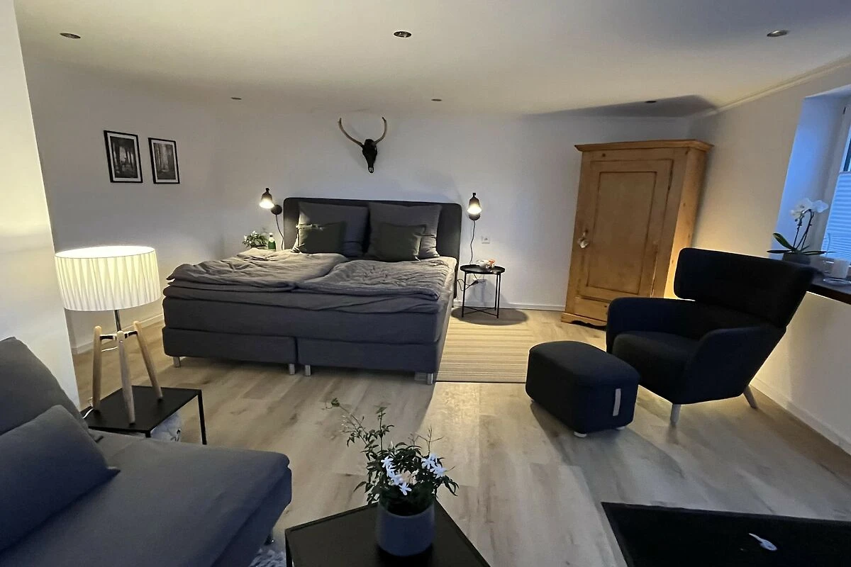 Das Appartement ist für zwei Personen konzipiert und verfügt über einen separaten Eingang, der Ihnen maximale Privatsphäre garantiert. Nach einem erlebnisreichen Tag in der Eifel können Sie hier in Ruhe entspannen und zur Erholung kommen. Eine private Sauna steht Ihnen ebenfalls zur Verfügung und sorgt insbesondere an kühleren Tagen für wohlige Wärme und zusätzliche Entspannung.