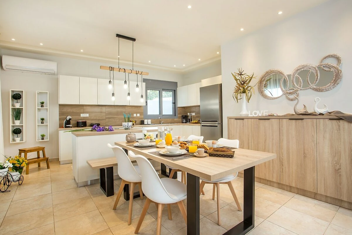 Diese wunderschöne Villa mit 2 Schlafzimmern und privatem Pool in Kalithies, Rhodos, verbindet Luxus mit entspannter mediterraner Atmosphäre. Im Inneren erwarten Sie stilvolle Innenräume, ein geräumiges Wohnzimmer mit Entertainment-System, eine voll ausgestattete Küche und ein Essbereich sowie zwei elegante Schlafzimmer mit hochwertiger Bettwäsche. Im Außenbereich ist der private Pool von Liegestühlen, schattigen Sitzgelegenheiten und einer Veranda für Mahlzeiten im Freien umgeben. Ein Willkommenskorb und ein persönlicher Check-in sorgen für eine warme Atmosphäre, während die ruhige Lage der Villa sie zu einem wahren Rückzugsort macht. Ein Auto wird empfohlen, da Geschäfte, Cafés, Bäckereien und Minimärkte nur 3 Autominuten entfernt sind.
