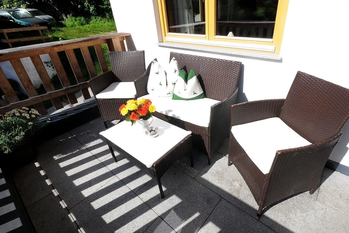 Besonderes Extra: Am benachbarten Bauernhof können Sie sich täglich frische Frühstückseier holen. Ob entspannte Stunden in der urigen Vollholz-Stube oder sommerliche Abende auf der Terrasse – das Ferienhaus Marie vereint alpinen Charme mit modernem Wohnkomfort.