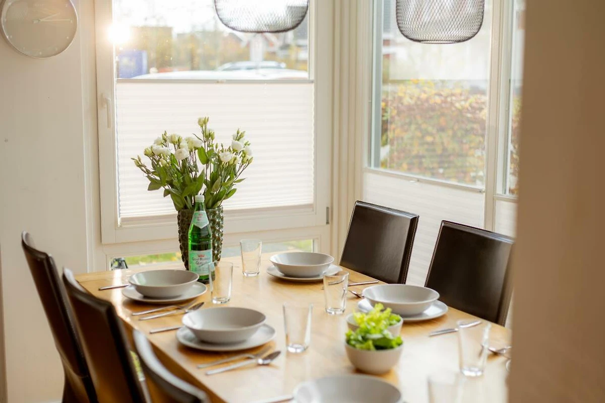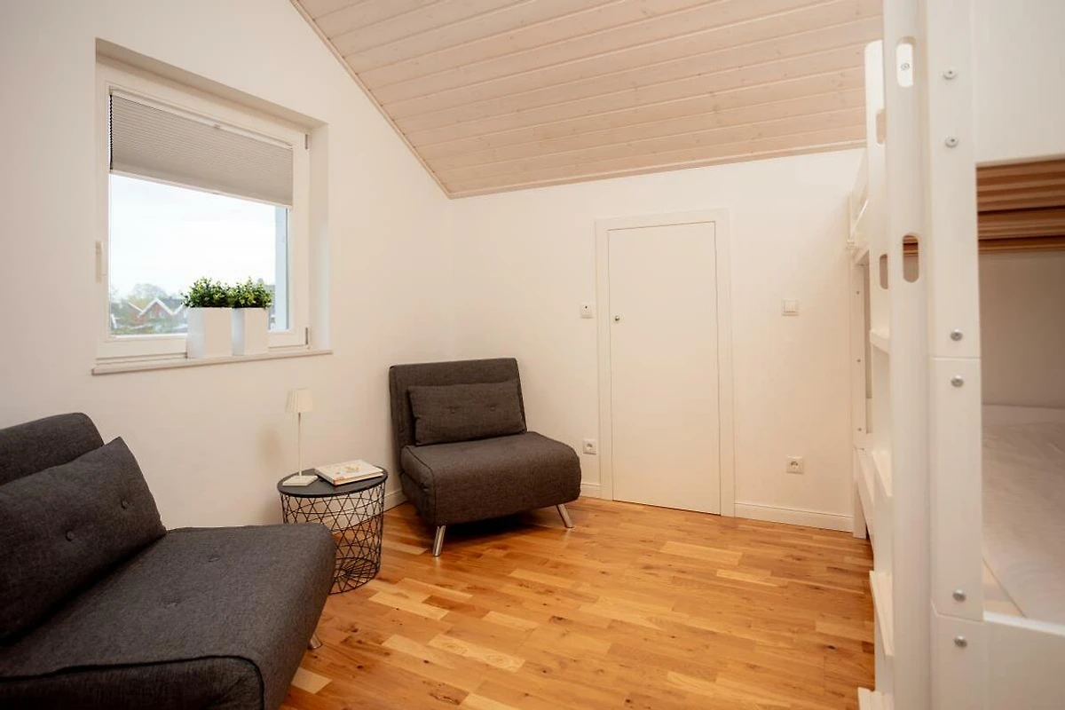Das stilvoll eingerichtete Haus überzeugt mit liebevollen Details und einem durchdachten Raumkonzept. Drei gemütliche Schlafzimmer bieten Platz für bis zu 6 Personen. Der helle Wohnbereich mit integrierter Essecke im Wintergarten schafft eine angenehme Atmosphäre, und die grosszügige, bestens ausgestattete Küche lässt keine Wünsche offen. Im Obergeschoss befindet sich – neben den Schlafzimmern und einem separaten Gäste-WC – eine offene Galerie mit Relaxliegen, von der aus Sie einen herrlichen Blick in den Garten und auf das Wasser geniessen.