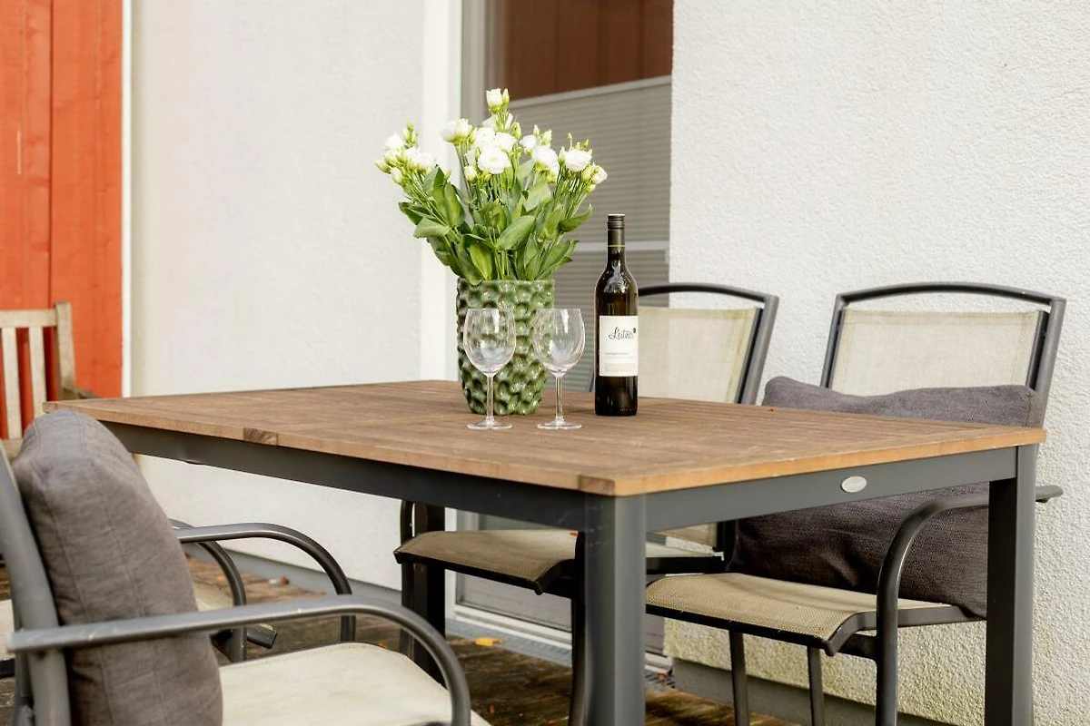 Erleben Sie wohltuende Momente in der hauseigenen Sauna mit Dusche und Whirlpool, lassen Sie auf den Relaxliegen Ihre Gedanken schweifen oder geniessen Sie am Abend die behagliche Wärme des Kamins. Die sonnige, möblierte Holzterrasse im Garten lädt zum Verweilen ein – ob mit einem Buch in der Hand, einem Glas Wein oder als Startpunkt für ausgedehnte Radtouren, eine Bootsfahrt auf der Vechte oder einen entspannten Stadtbummel. Die Möglichkeiten für unvergessliche Urlaubstage sind vielfältig.